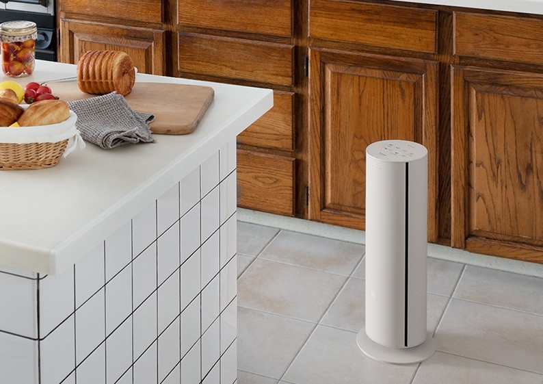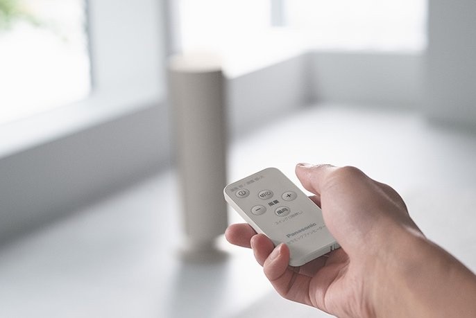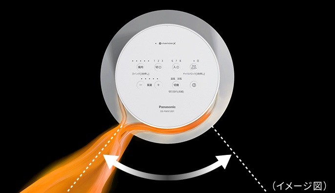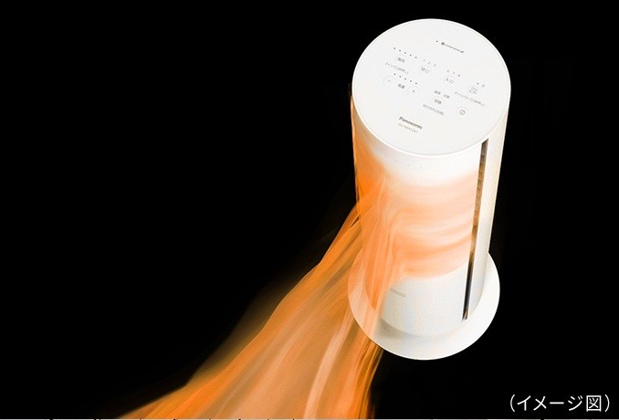 設置面積の少ないコンパクト&スリムな円筒タワー形状のナノイーX搭載ファンヒーター
