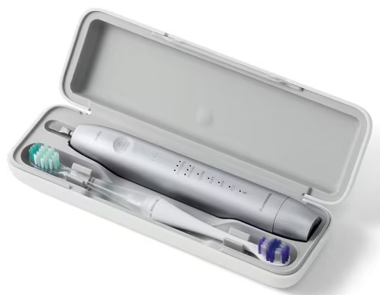付属品 : 歯間フィットブラシ、トータルケアブラシ、極細毛ブラシ(コンパクト)、極細毛ポイント磨きブラシ、携帯ケース、ブラシスタンド、充電スタンド(USBプラグType-A)、本体スタンド