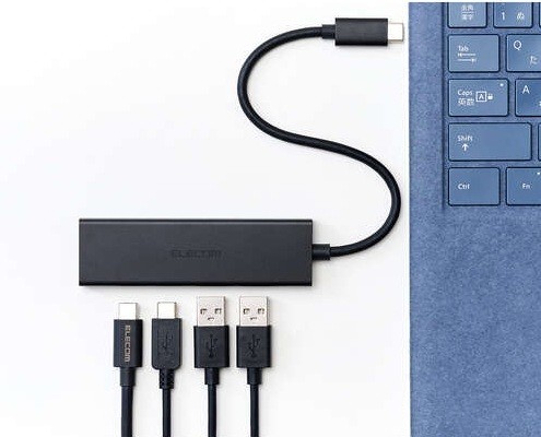 データ専用の2つのUSB-Aポートと1つのUSB Type-C(TM)ポート、給電専用のUSB Power Delivery対応USB Type-Cポートも搭載した、USB Type-C接続のUSBハブです