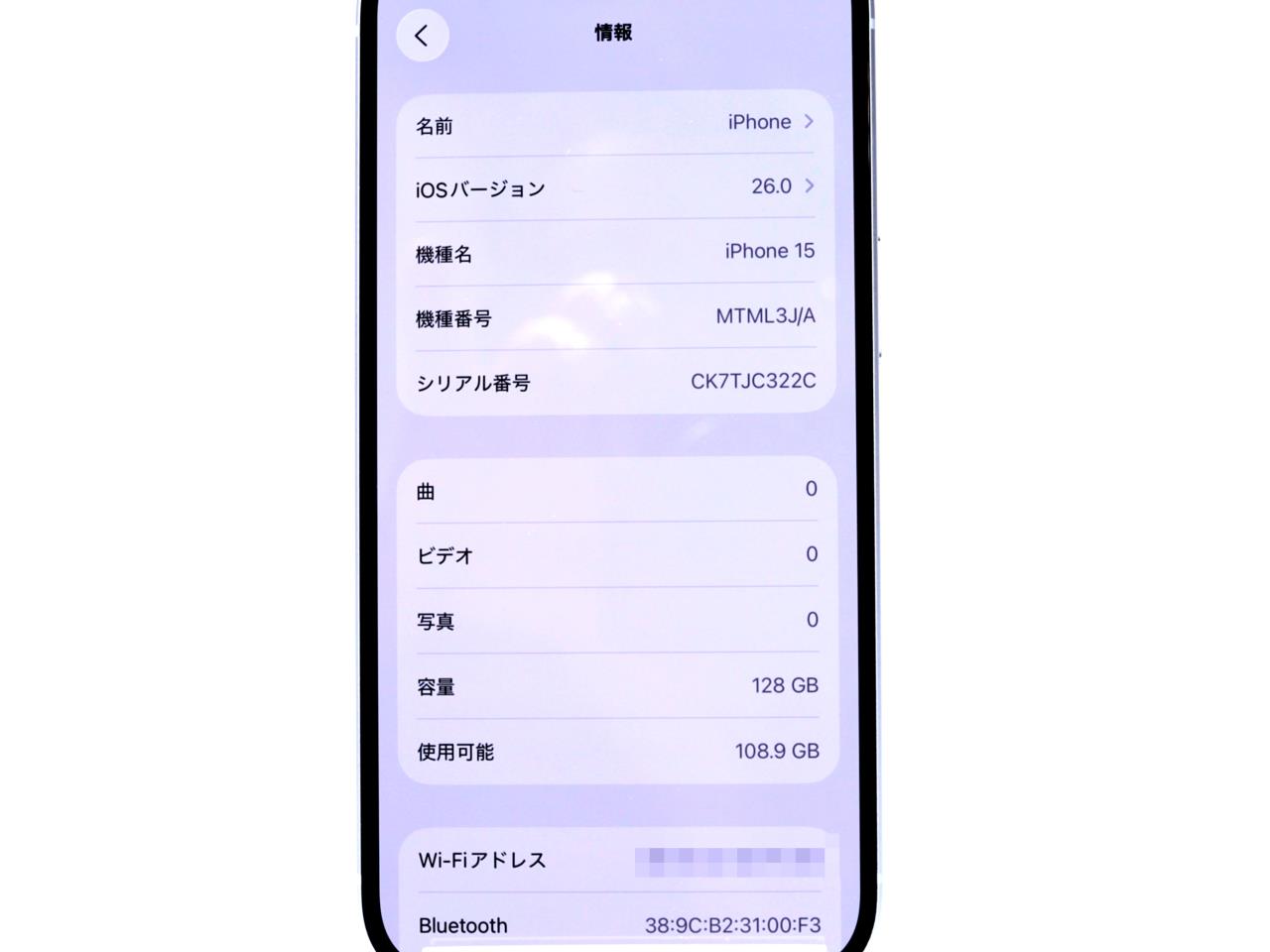 APPLE [USED]u058834 iPhone15 128GB SIMフリー [ブルー] の 商品仕様: