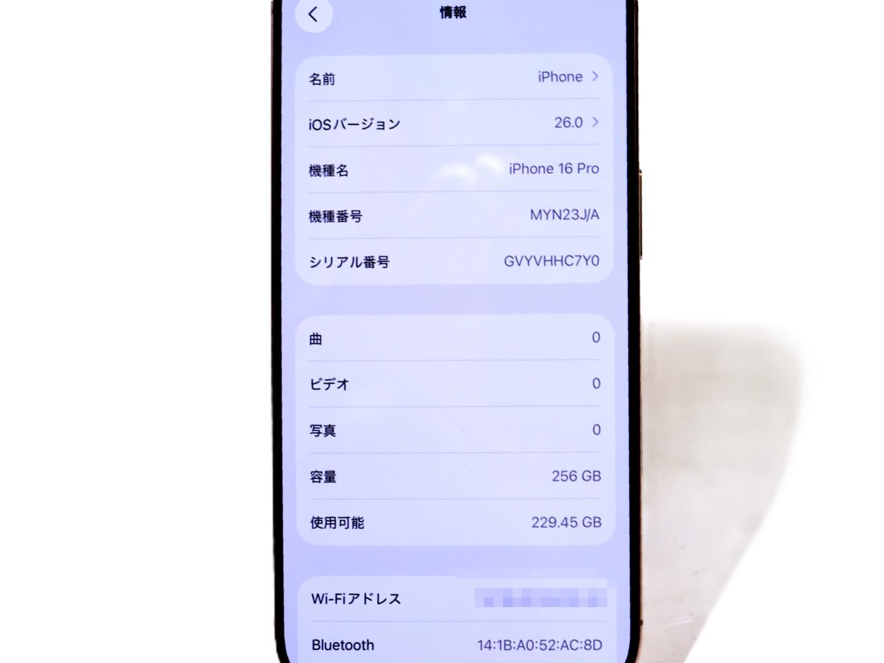 - [USED]u058887 iPhone16 Pro 256GB SIMフリー [デザートチタニウム]