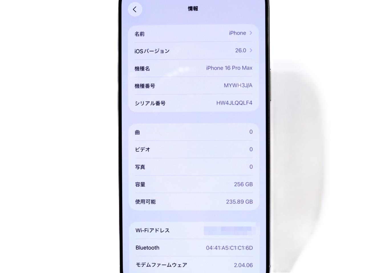 - [USED]u058936 iPhone16 Pro Max 256GB SIMフリー [ホワイトチタニウム]