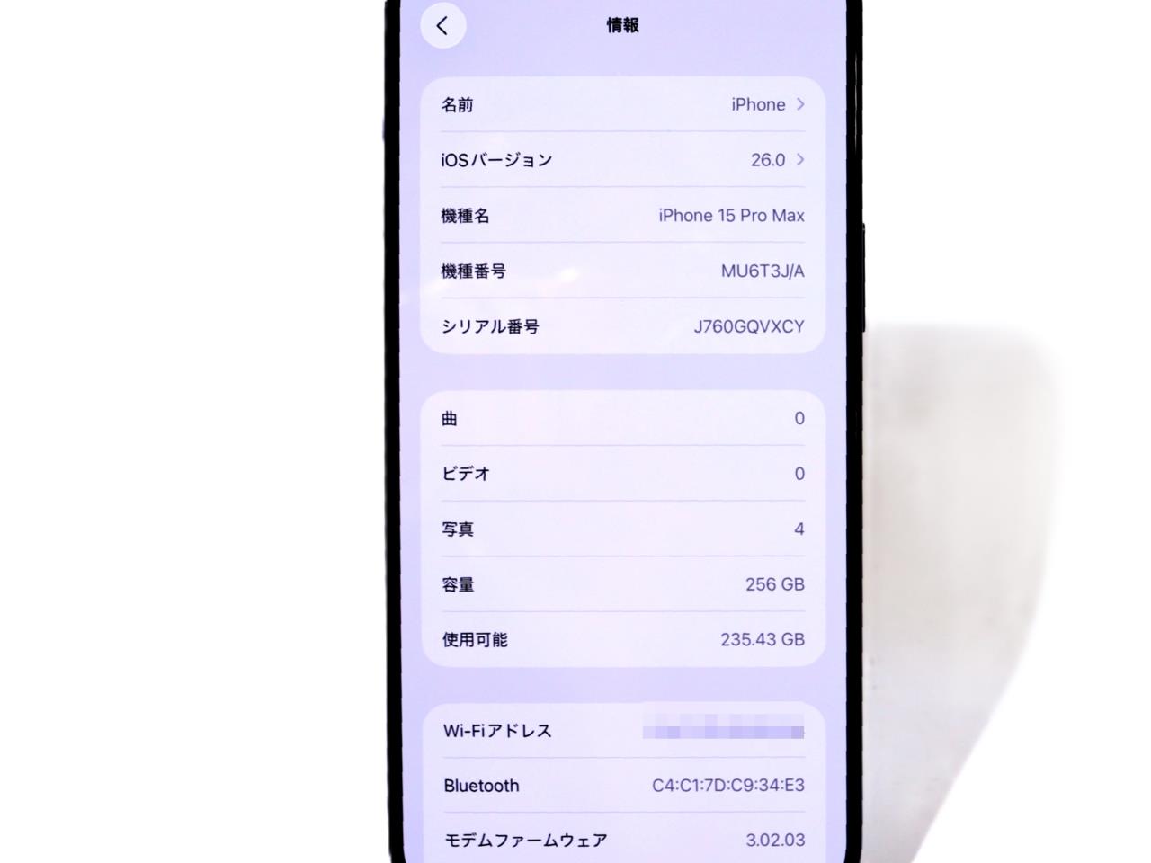 - [USED]u058951 iPhone15 Pro Max 256GB SIMフリー [ブルーチタニウム]