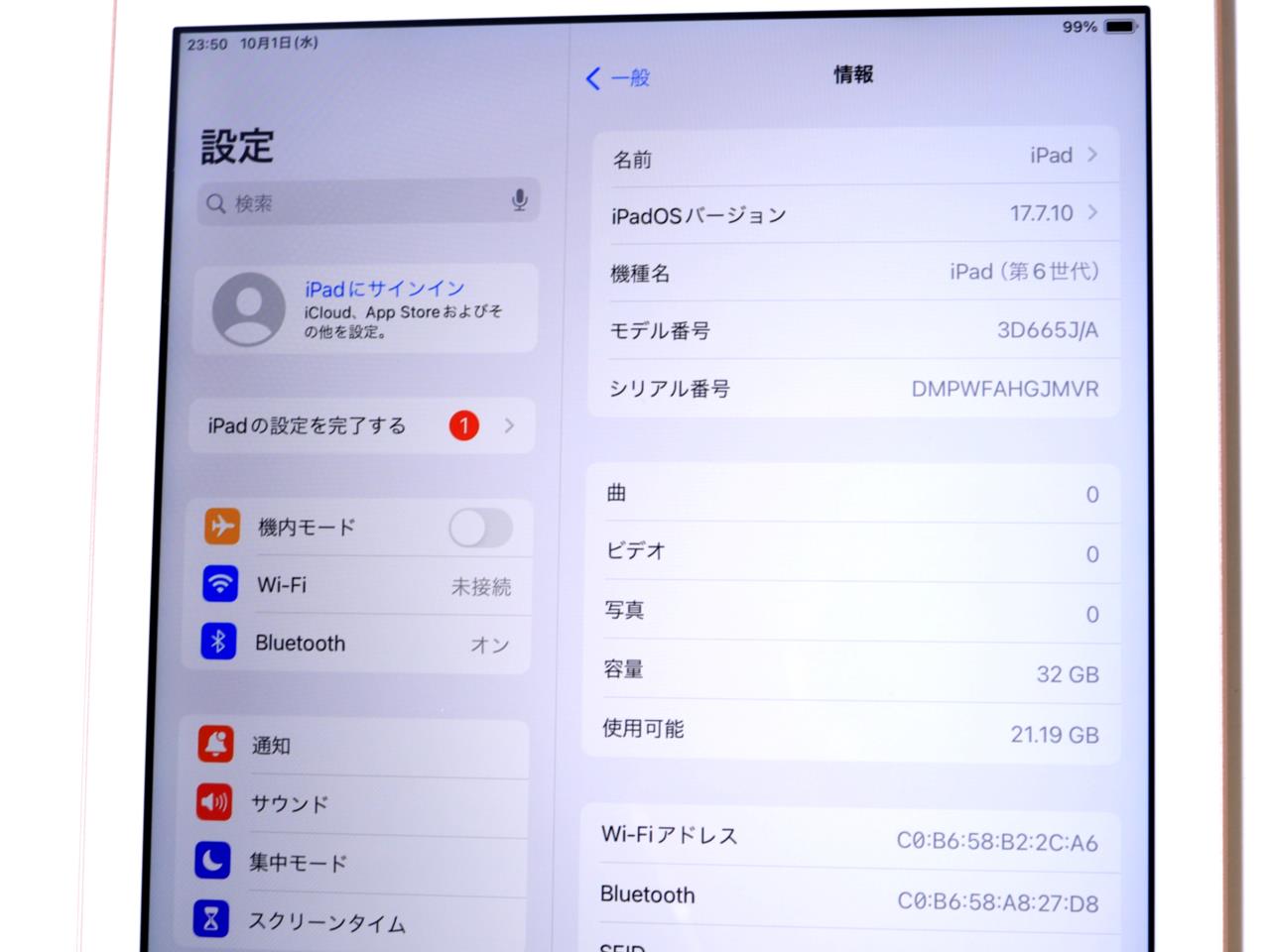 APPLE [USED]u058972 iPad 9.7インチ 第6世代 Wi-Fi 32BG [ゴールド] 3D665J/A の 商品仕様: