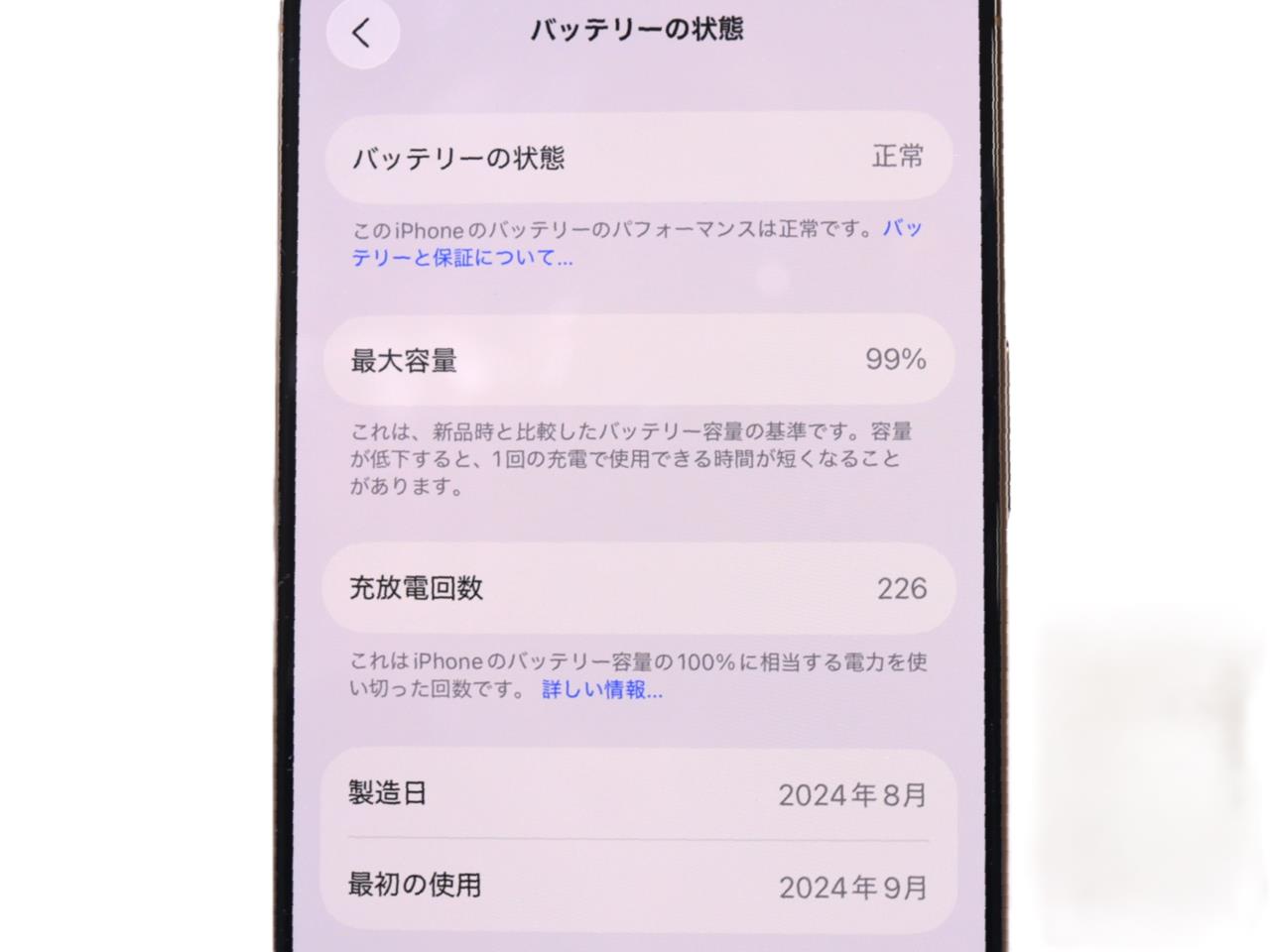 バッテリー最大容量表示=99%です。