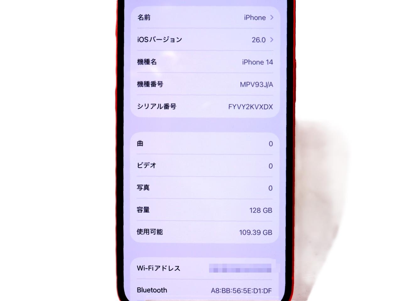 APPLE [USED]u058977 iPhone14 (PRODUCT)RED 128GB SIMフリー [レッド] の 商品仕様: