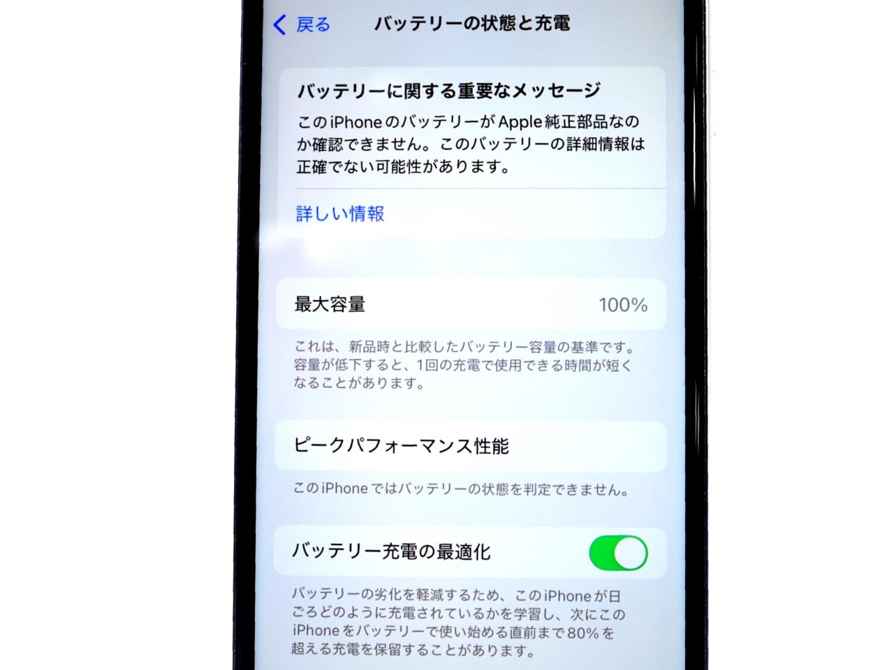 バッテリー最大容量表示=100%です。(バッテリー非純正です)