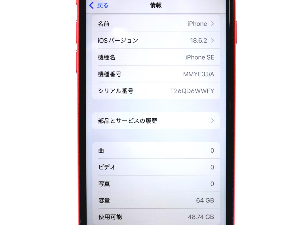 APPLE [USED]u058993 iPhone SE (第3世代) 64GB [レッド] の 商品仕様: