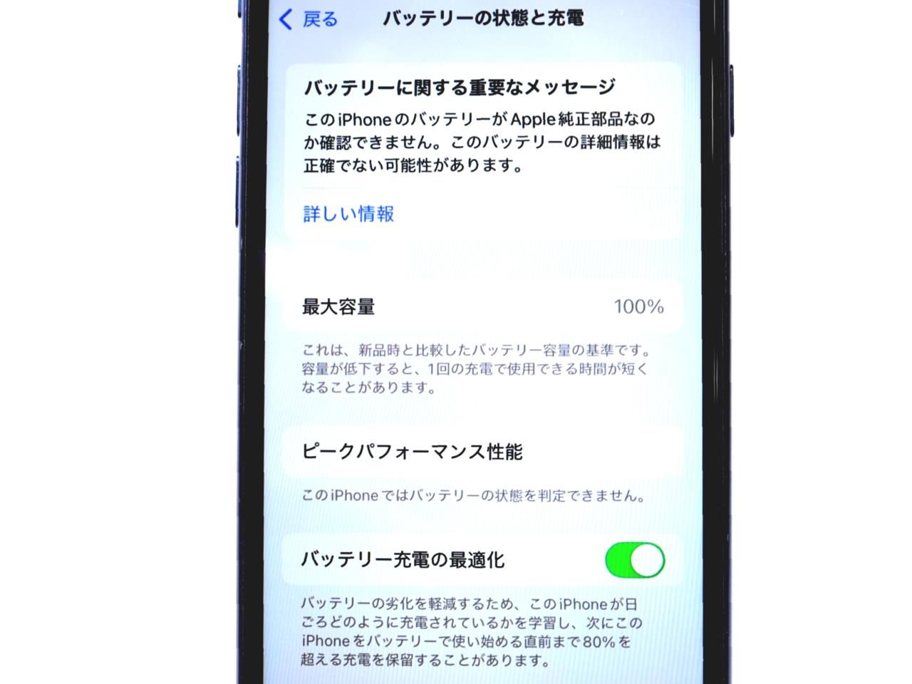 バッテリー最大容量表示=100%です。(バッテリー非純正です)