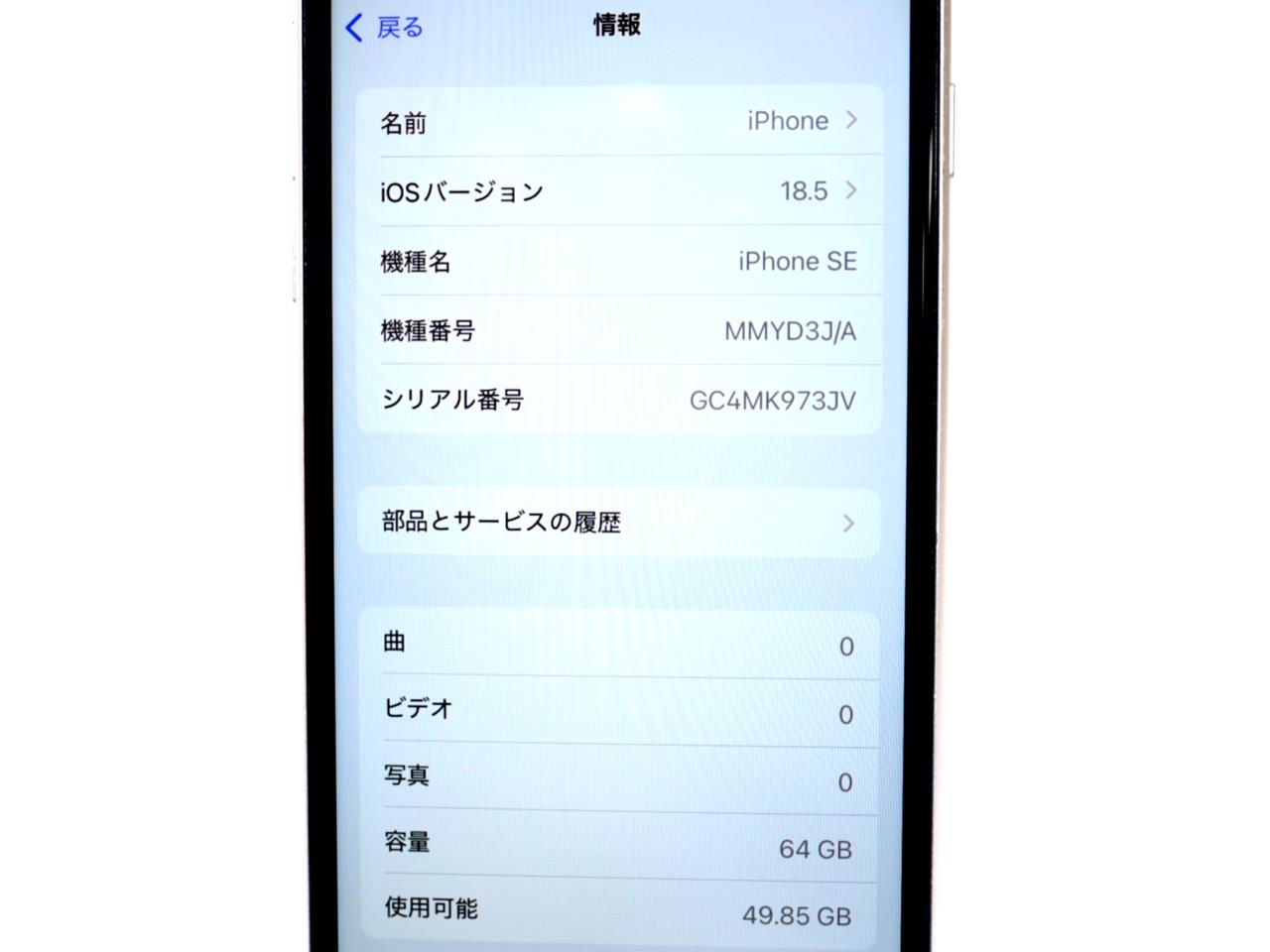 APPLE [USED]u059001 iPhoneSE (第3世代) 64GB SIMフリー [スターライト] の 商品仕様: