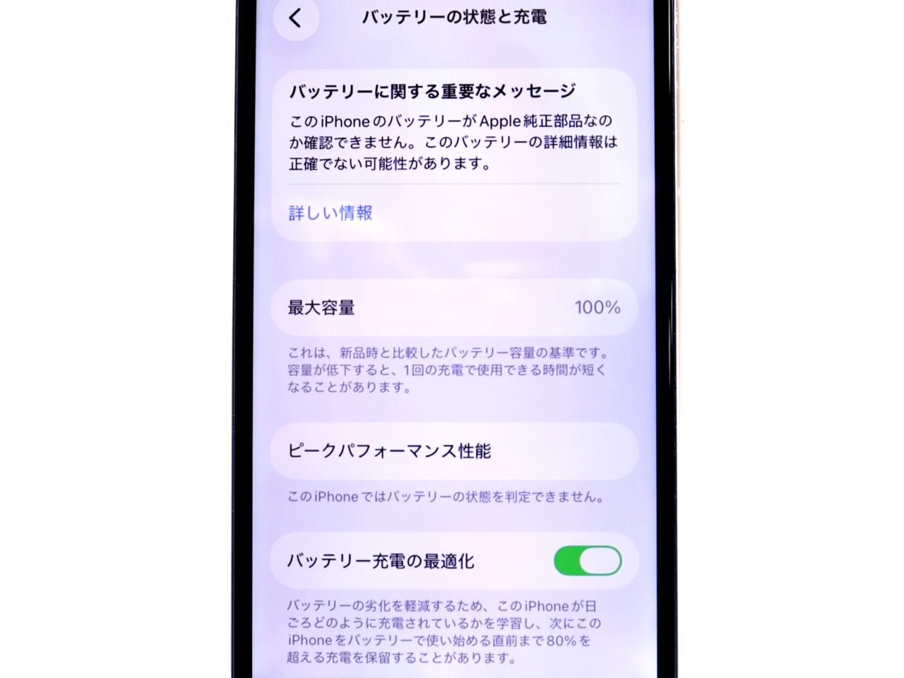 バッテリー最大容量表示=100%です。(バッテリー非純正です)