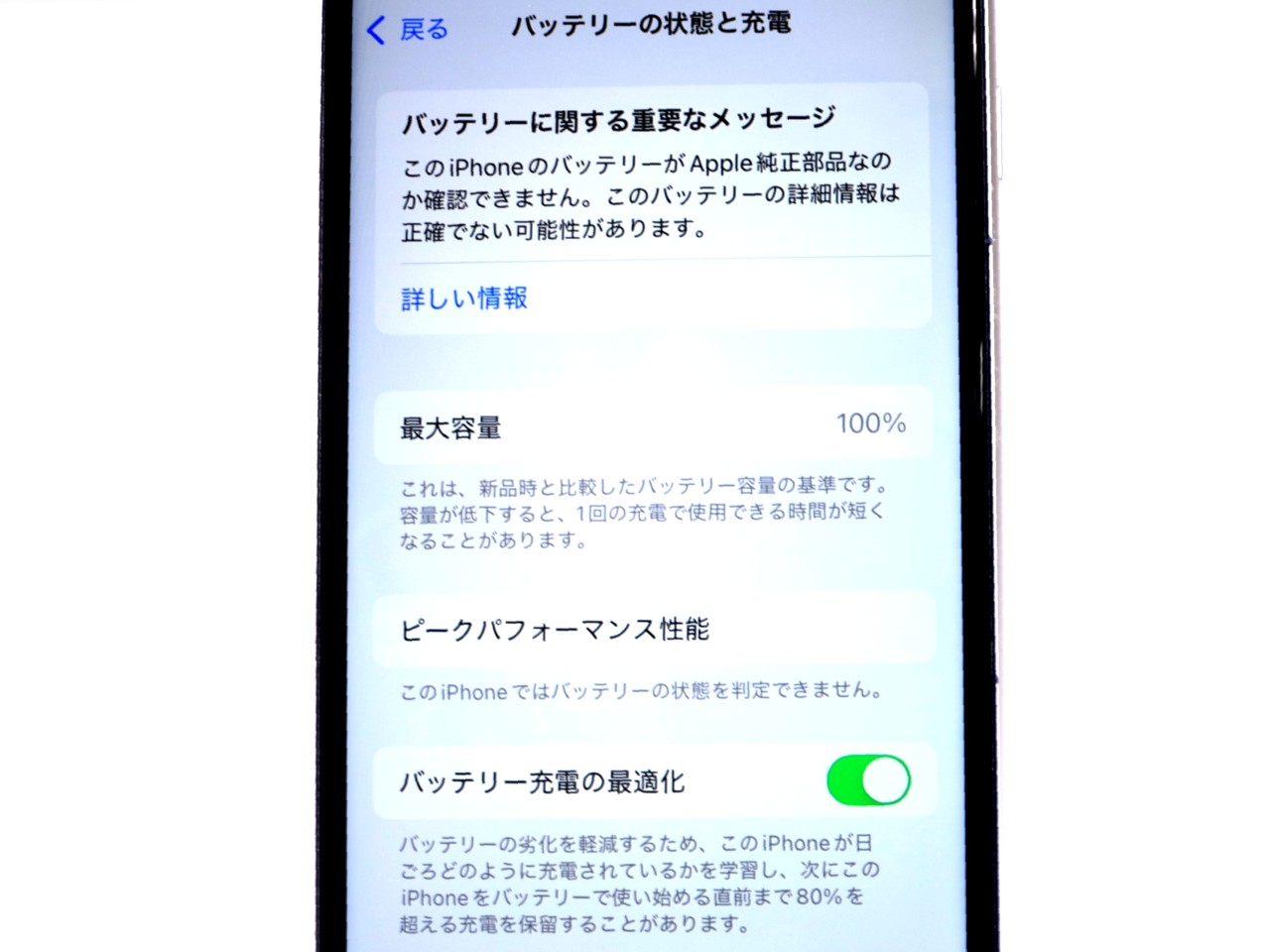 バッテリー最大容量=100%です。(互換バッテリー交換済)