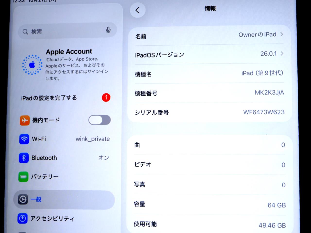 APPLE [USED]u059011 iPad 10.2inch 9th 64GB MK2K3J/A [スペースグレイ] の 商品仕様: