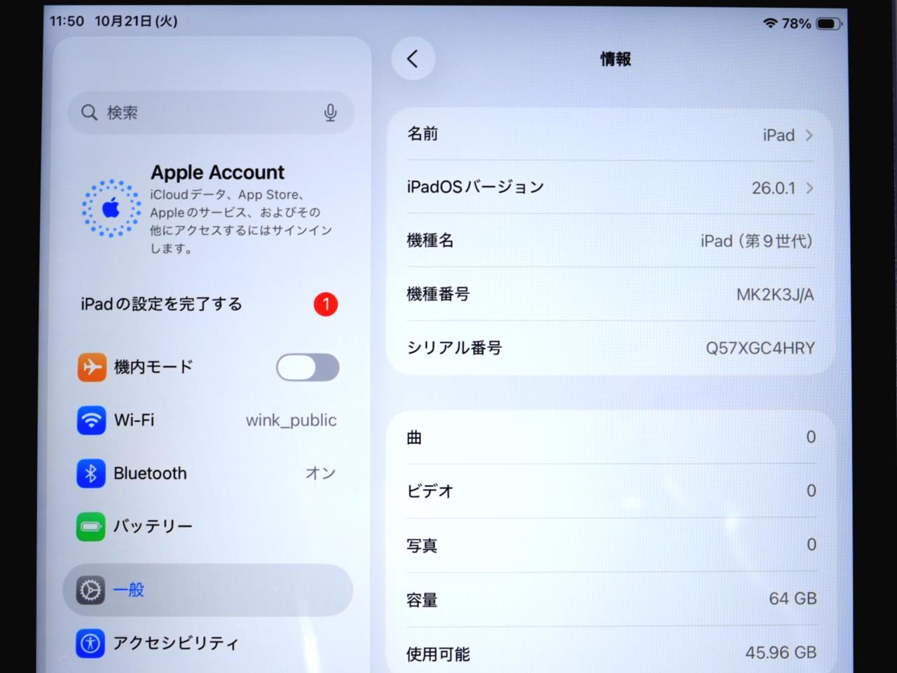 APPLE [USED]u059014 iPad 10.2inch 9th 64GB MK2K3J/A [スペースグレイ] の 商品仕様: