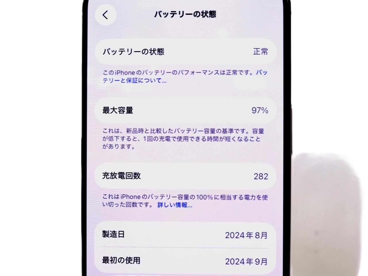 バッテリー最大容量表示=97%です。