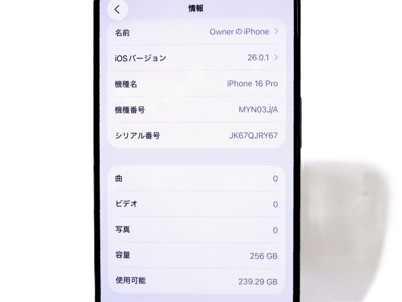 - [USED]u059022 iPhone16 Pro 256GB SIMフリー [ブラックチタニウム]