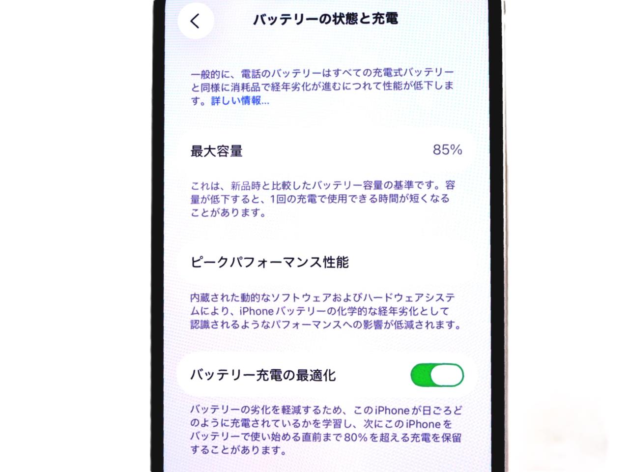 バッテリー最大容量=85%です。