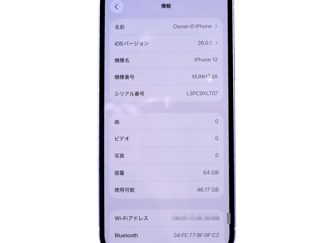 APPLE [USED]u059034 iPhone12 64GB SIMフリー [パープル] の 商品仕様: