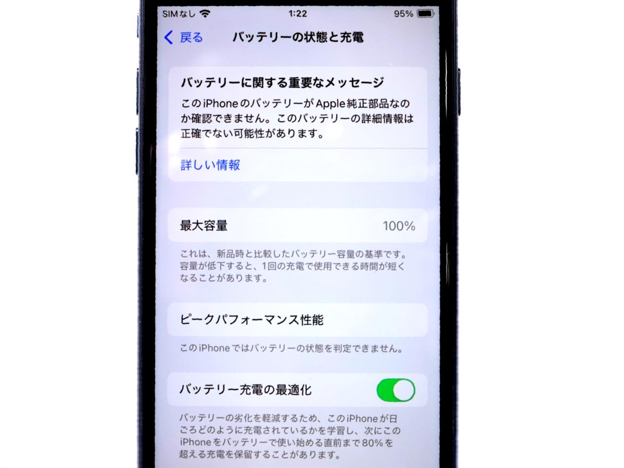 バッテリー最大容量表示=100%です。 バッテリー非純正です。