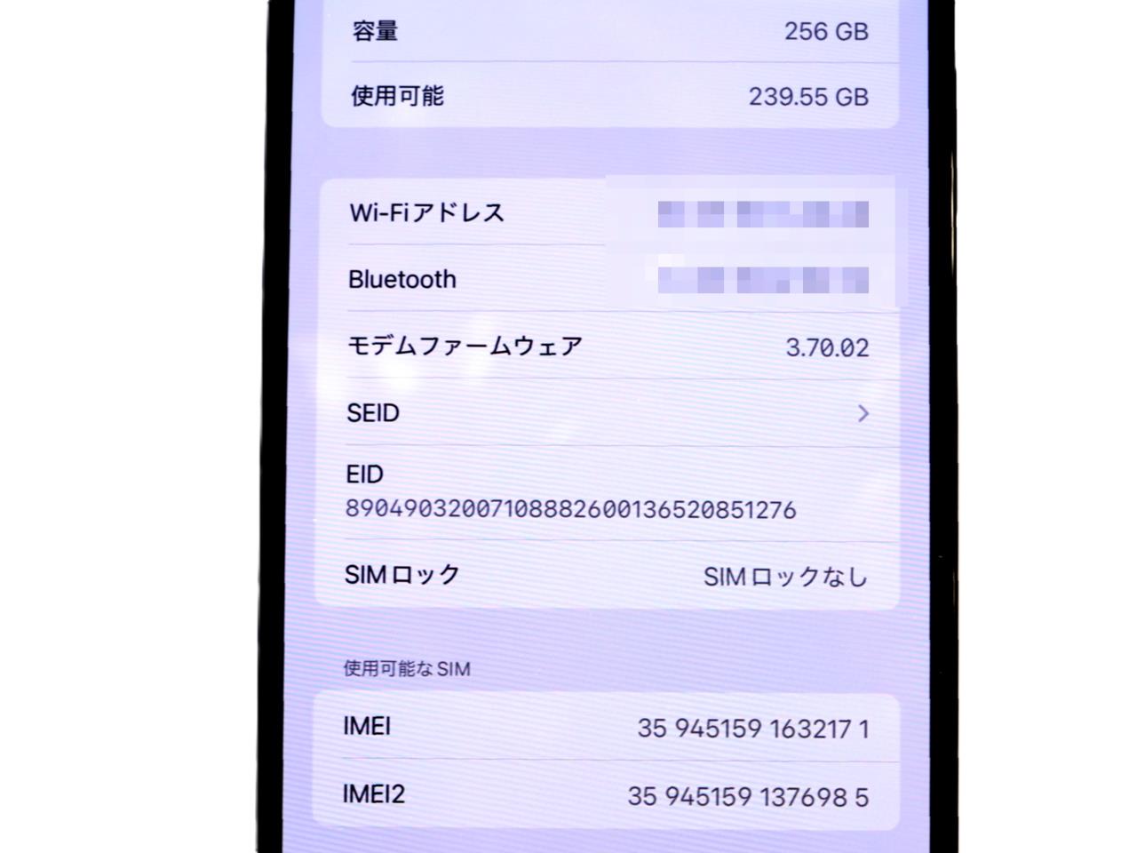 内蔵メモリ : 256GB