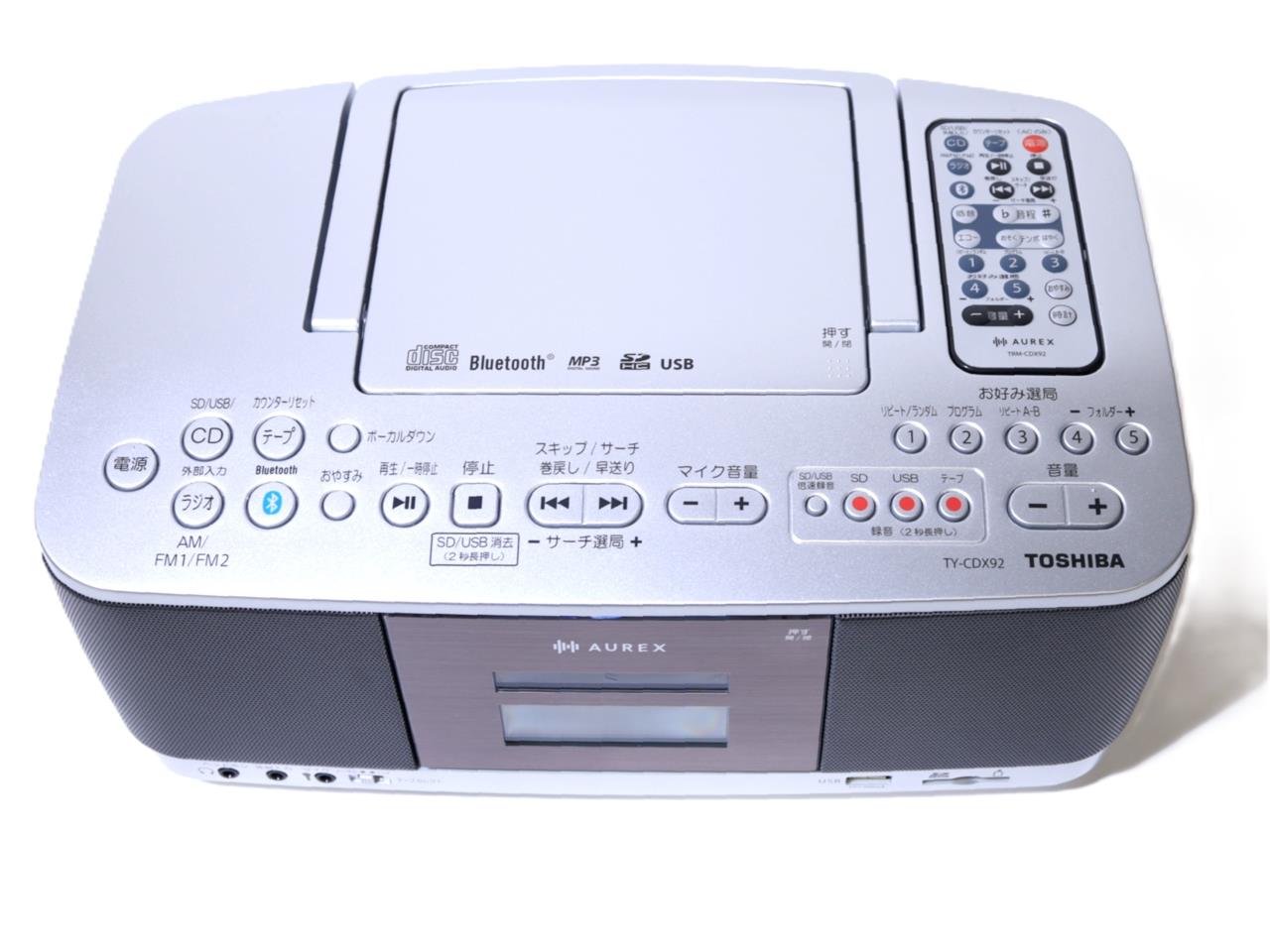 機能 : CD-R/RW再生/MP3対応/USB端子/ヘッドホン端子/マイク端子/スリープタイマー