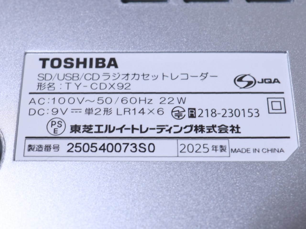 TOSHIBA [USED]u059135 TY-CDX92 の 商品仕様: