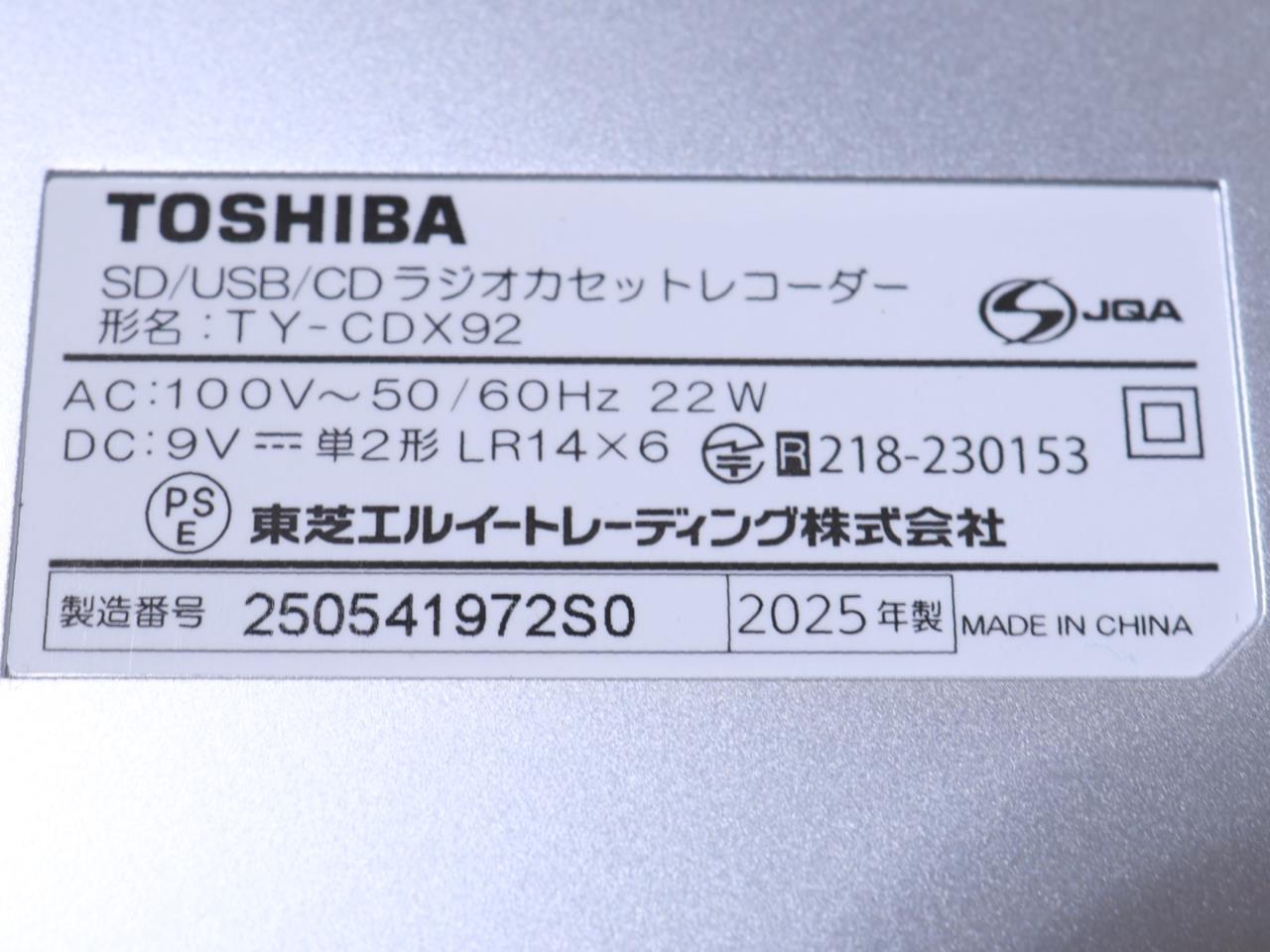 TOSHIBA [USED]u059136 TY-CDX92 の 商品仕様: