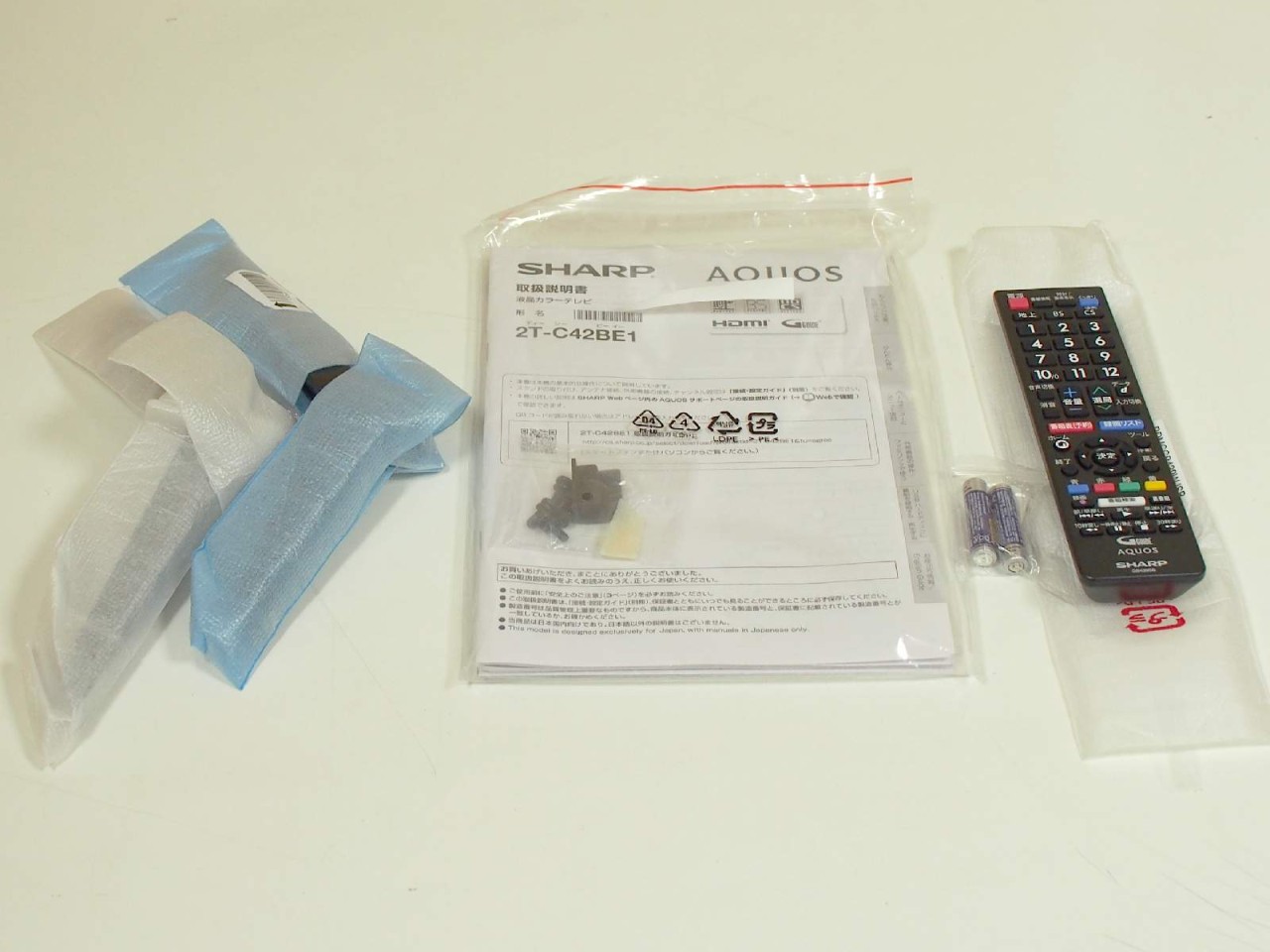 付属品 : ACコード(取付済)/スタンド(組立て式)/ワイヤレスリモコン/リモコン用乾電池(2個)/B-CASカード/転倒防止用部品(取付済)