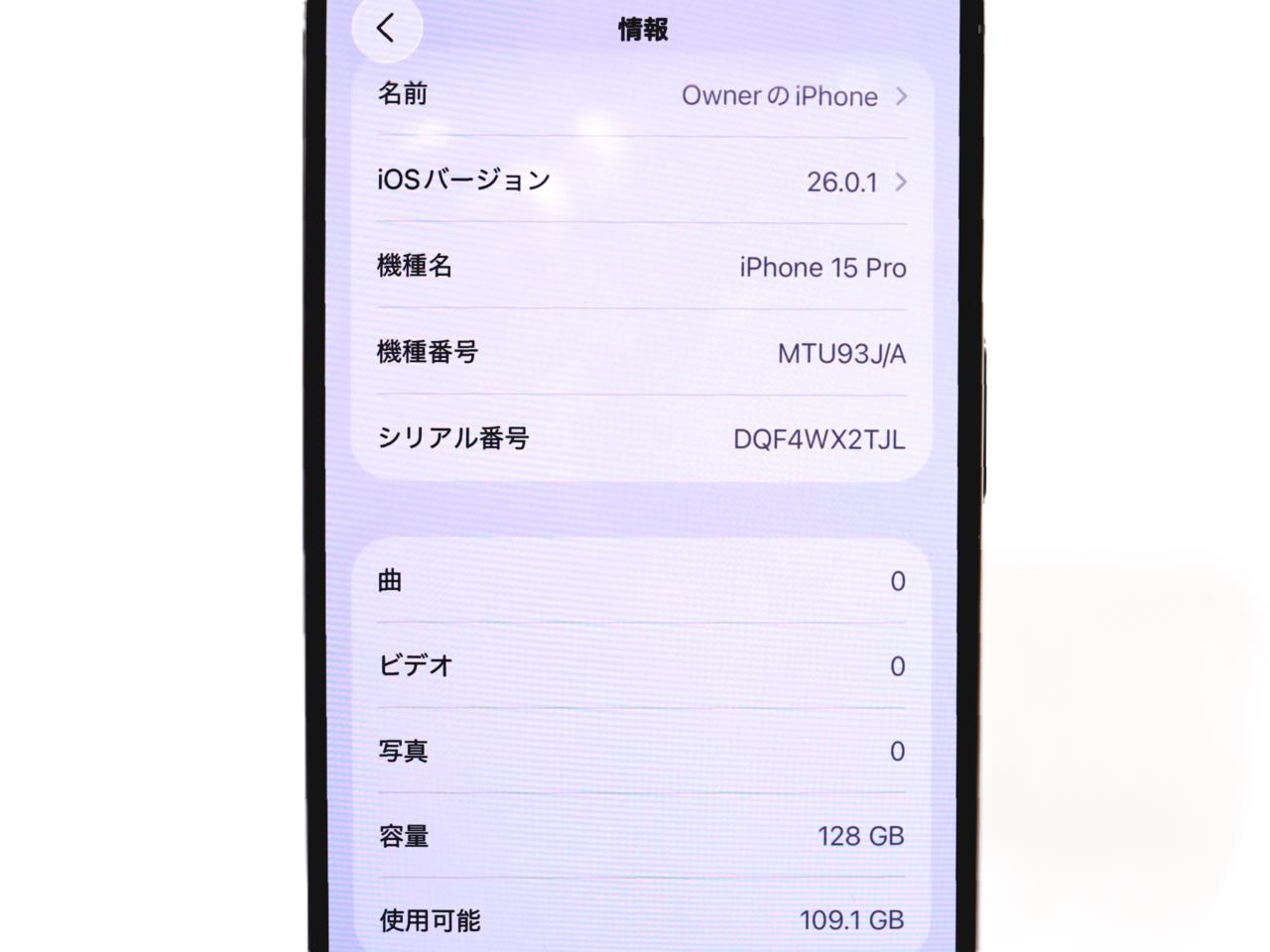 APPLE [USED]u059201 iPhone15 Pro 128GB SIMフリー [ナチュラルチタニウム] の 商品仕様: