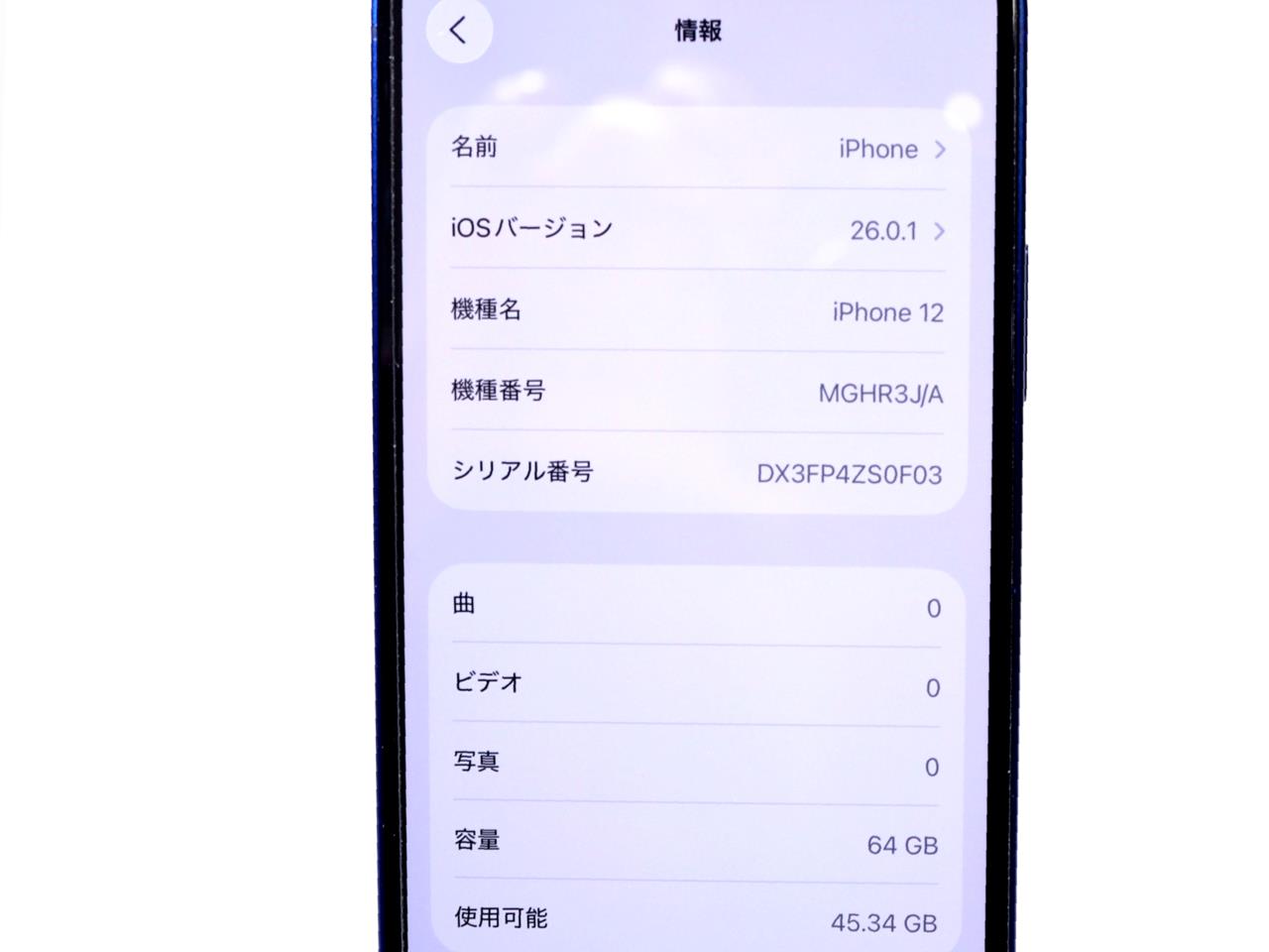 - [USED]u059205 iPhone12 64GB SIMフリー [ブルー]