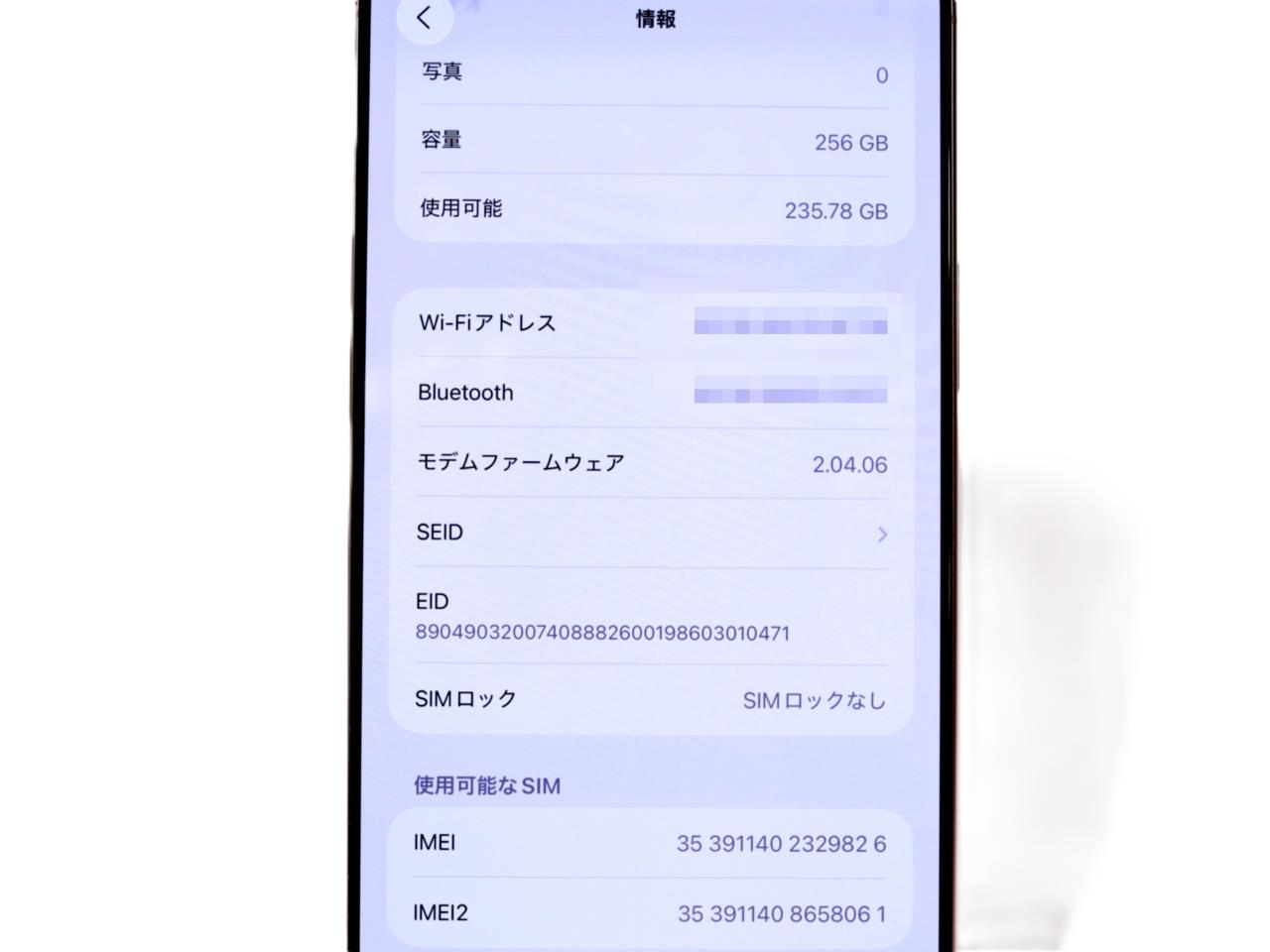 内蔵メモリ : 256GB