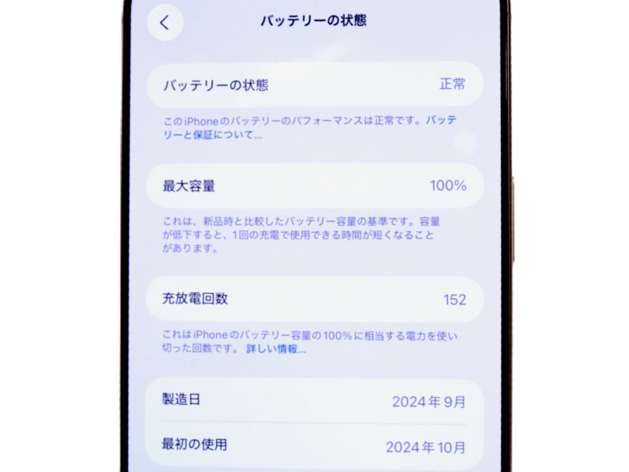 バッテリー最大容量表示=100%です。