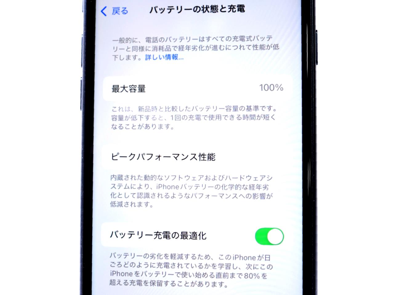 バッテリー最大容量表示=100%です。