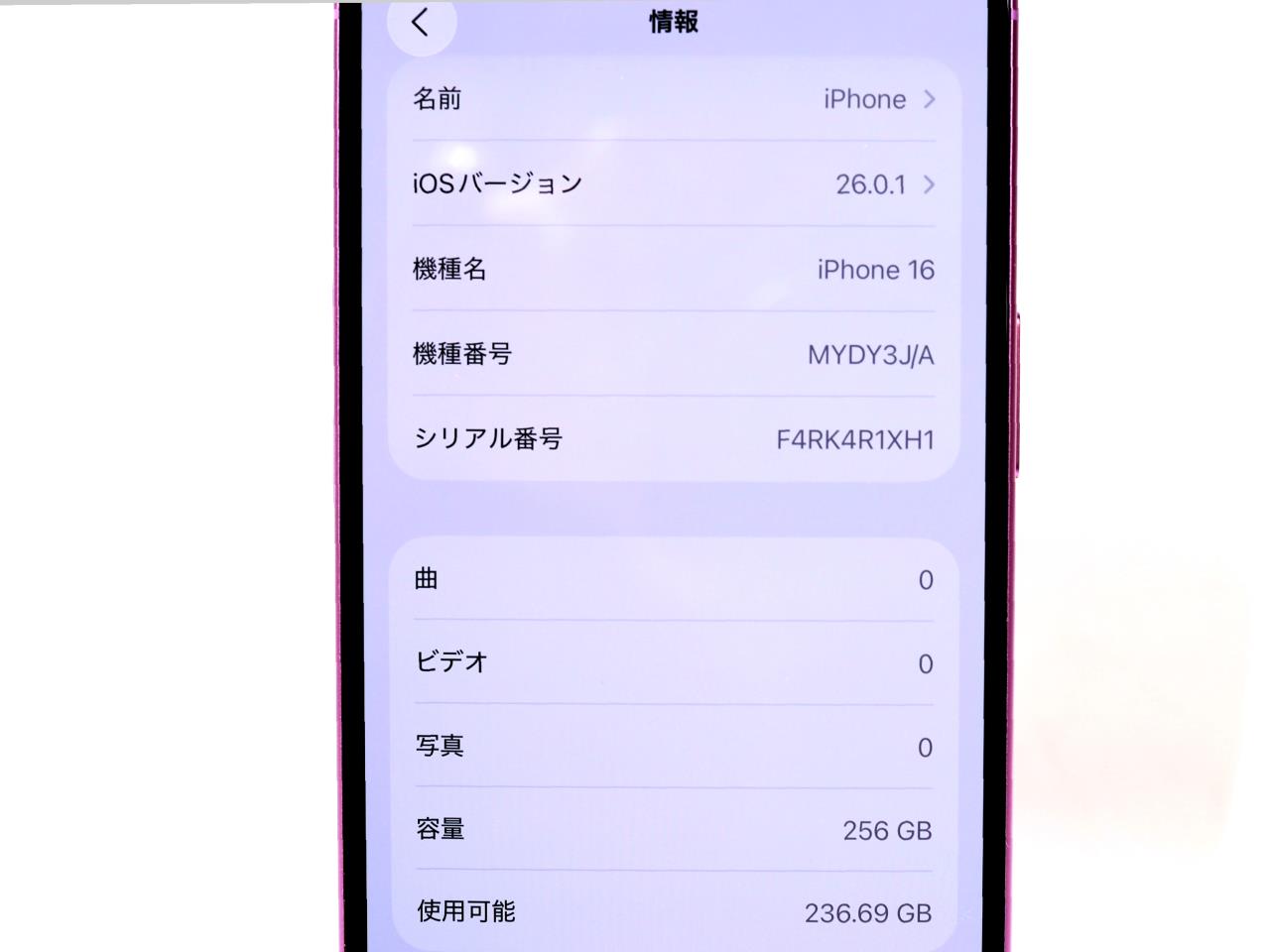 - [USED]u059238 iPhone16 256GB SIMフリー [ピンク]