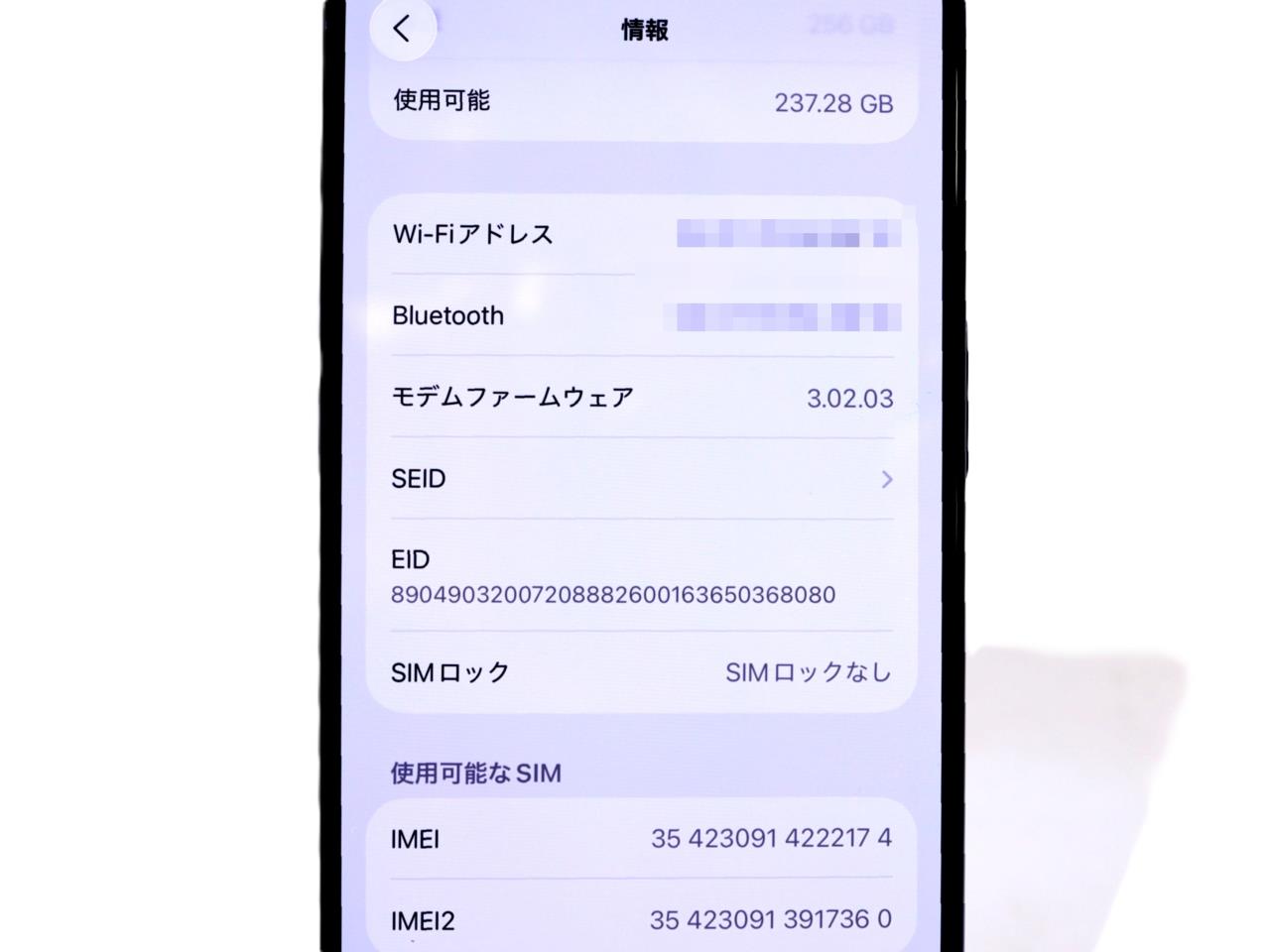 内蔵メモリ : 256GB