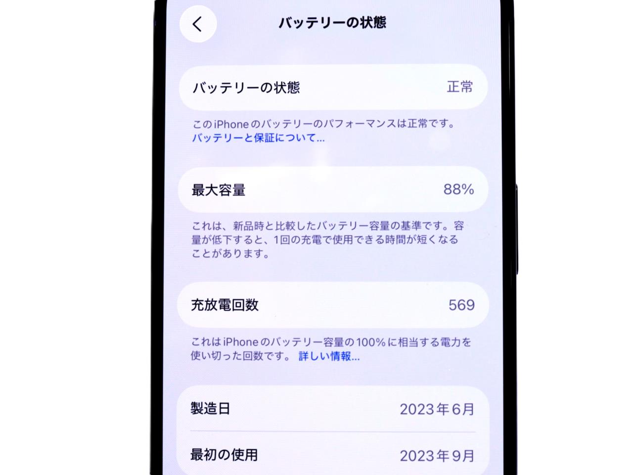 バッテリー最大容量=88%です。