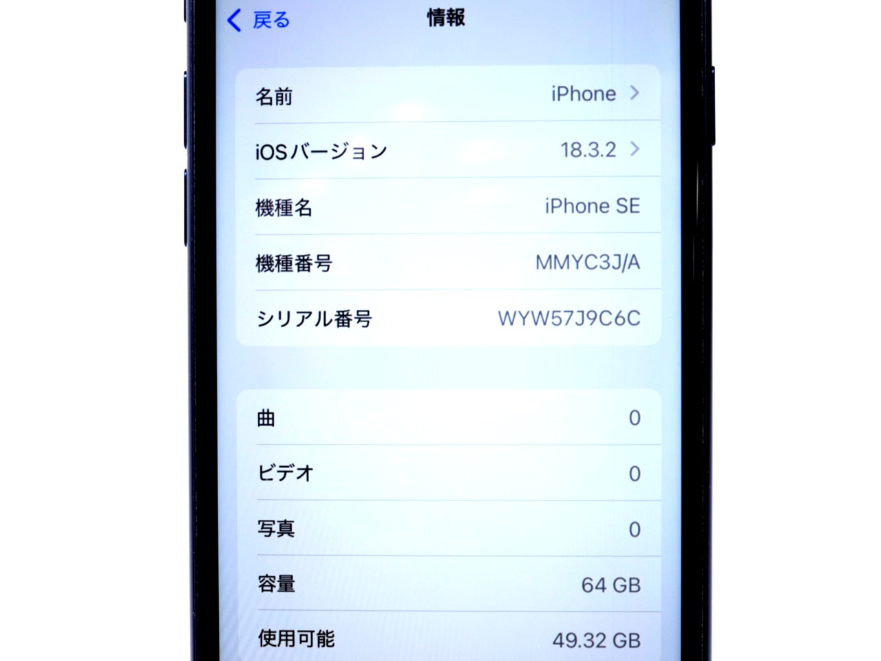 APPLE [USED]u059274 iPhoneSE (第3世代) 64GB SIMフリー [ミッドナイト] の 商品仕様: