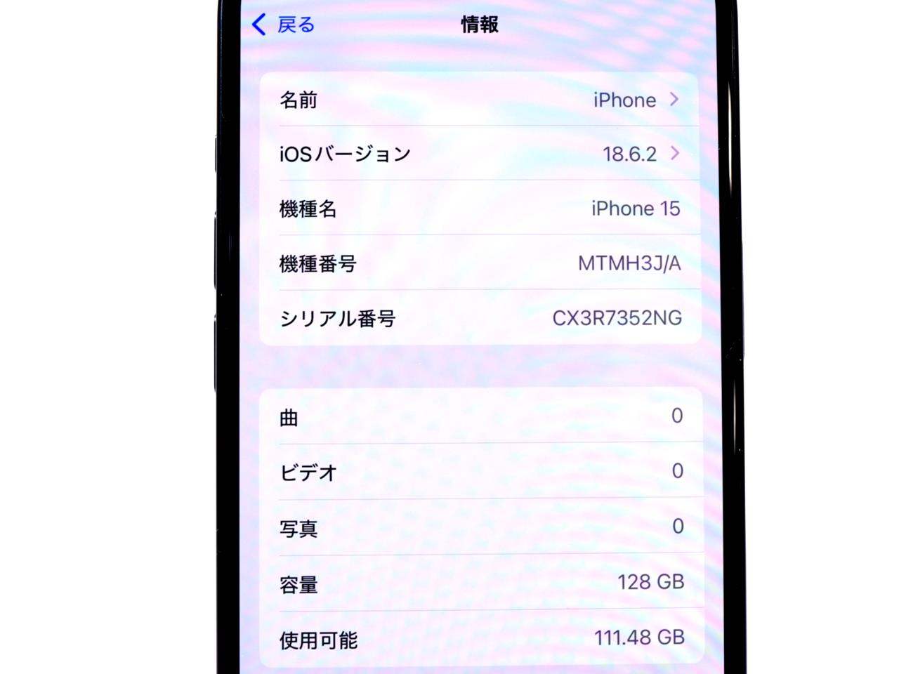- [USED]u059315 iPhone15 128GB SIMフリー [ブラック]