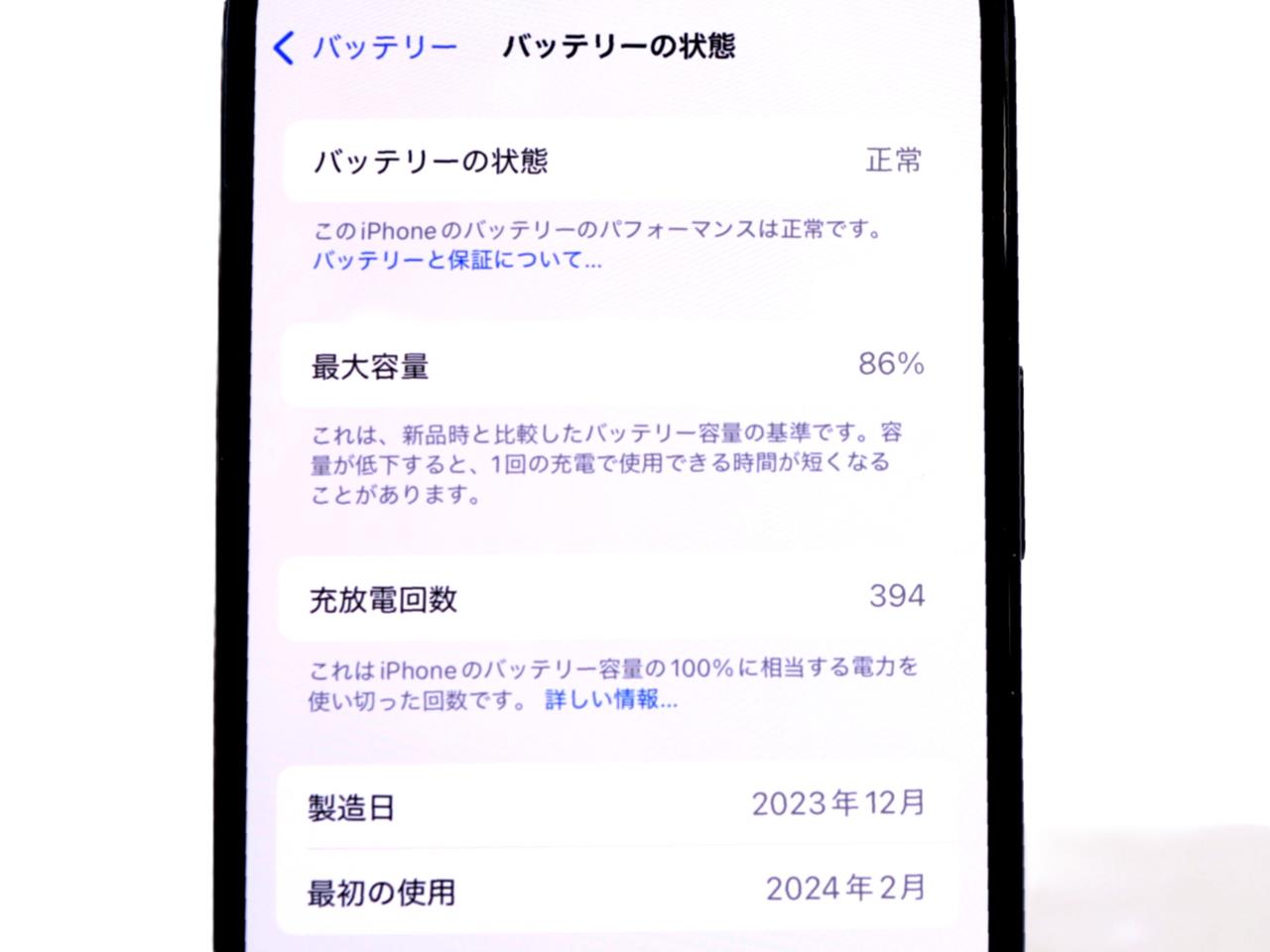 APPLE [USED]u059315 iPhone15 128GB SIMフリー [ブラック] の 商品仕様: