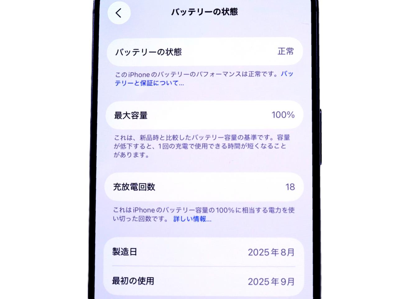 バッテリー最大容量表示=100%です。