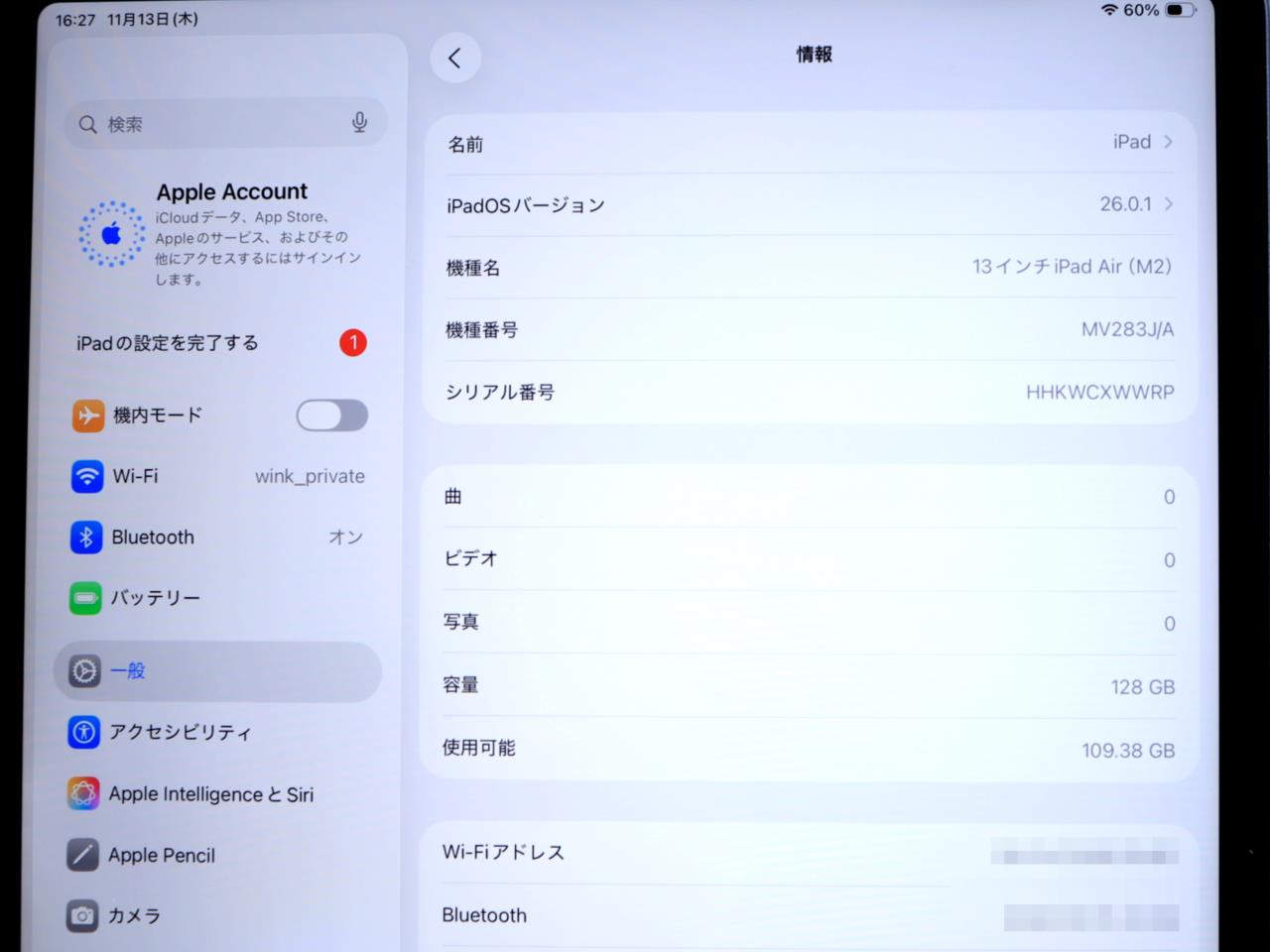 APPLE [中古]iPad iPad Air 13インチ Wi-Fi 128GB 2024年春モデル MV283J/A [ブルー]