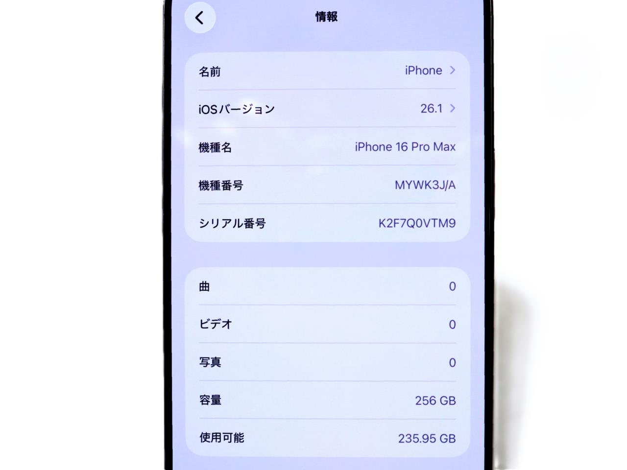 - [USED]u059461 iPhone16 Pro Max 256GB [ナチュラルチタニウム]