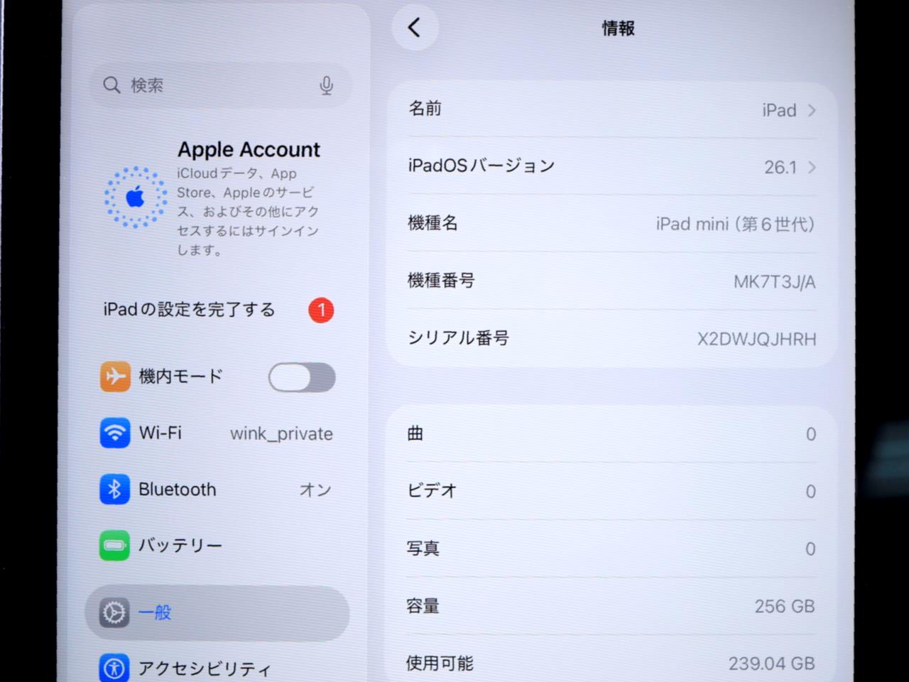 APPLE [USED]u059476 iPad mini 8.3インチ 第6世代 Wi-Fi 256GB 2021年秋モデル MK7T3J/A [スペースグレイ] の 商品仕様: