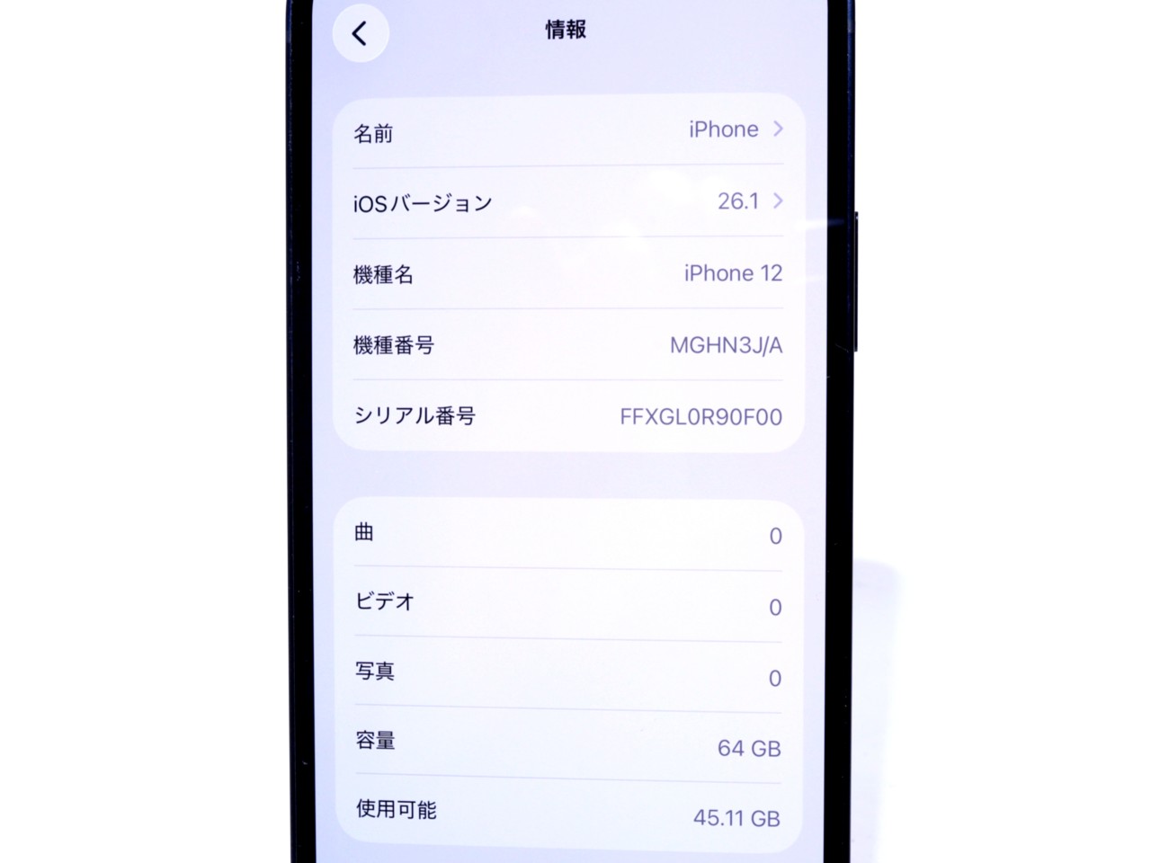 APPLE [USED]u059478 iPhone 12 64GB SIMフリー [ブラック] の 商品仕様: