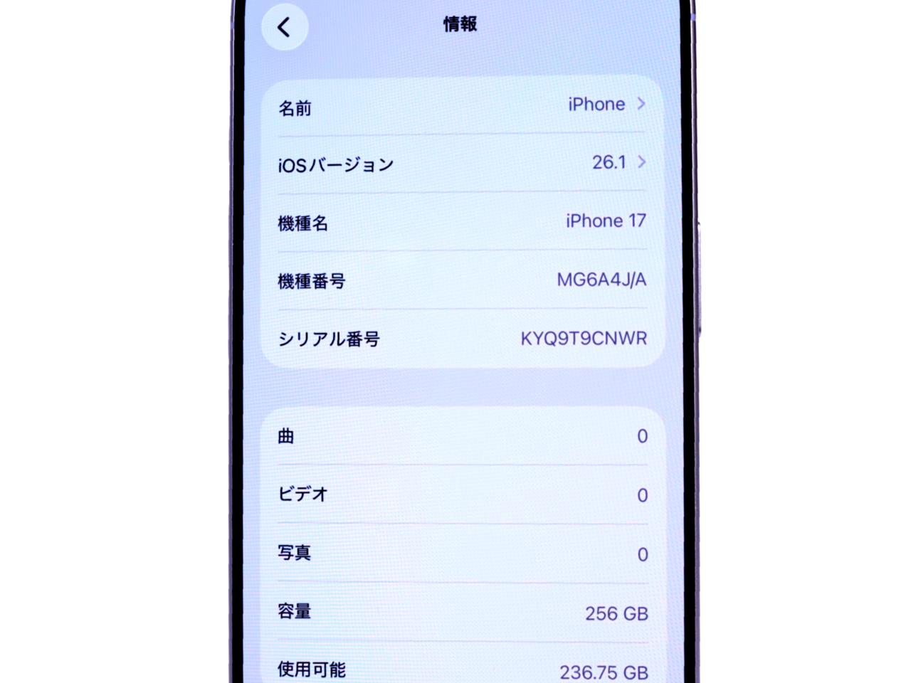 - [USED]u059500 iPhone17 256GB SIMフリー [ラベンダー]