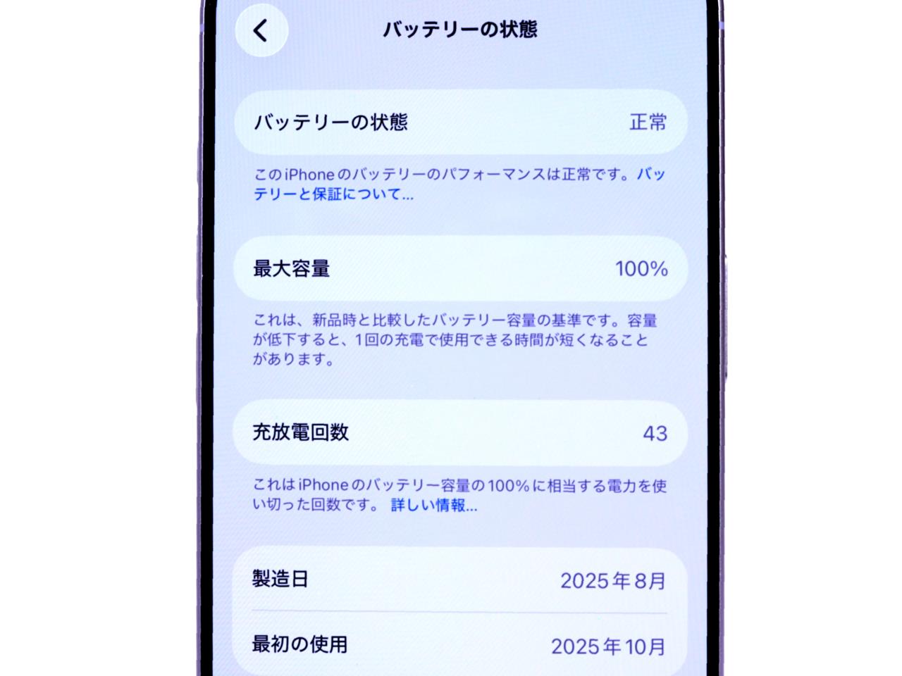 APPLE [USED]u059500 iPhone17 256GB SIMフリー [ラベンダー] の 商品仕様: