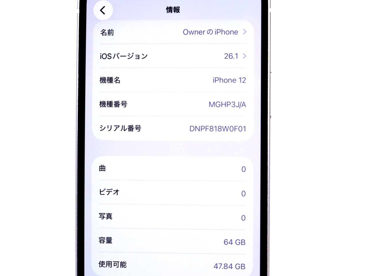 APPLE [USED]u059502 iPhone12 64GB SIMフリー [ホワイト] の 商品仕様: