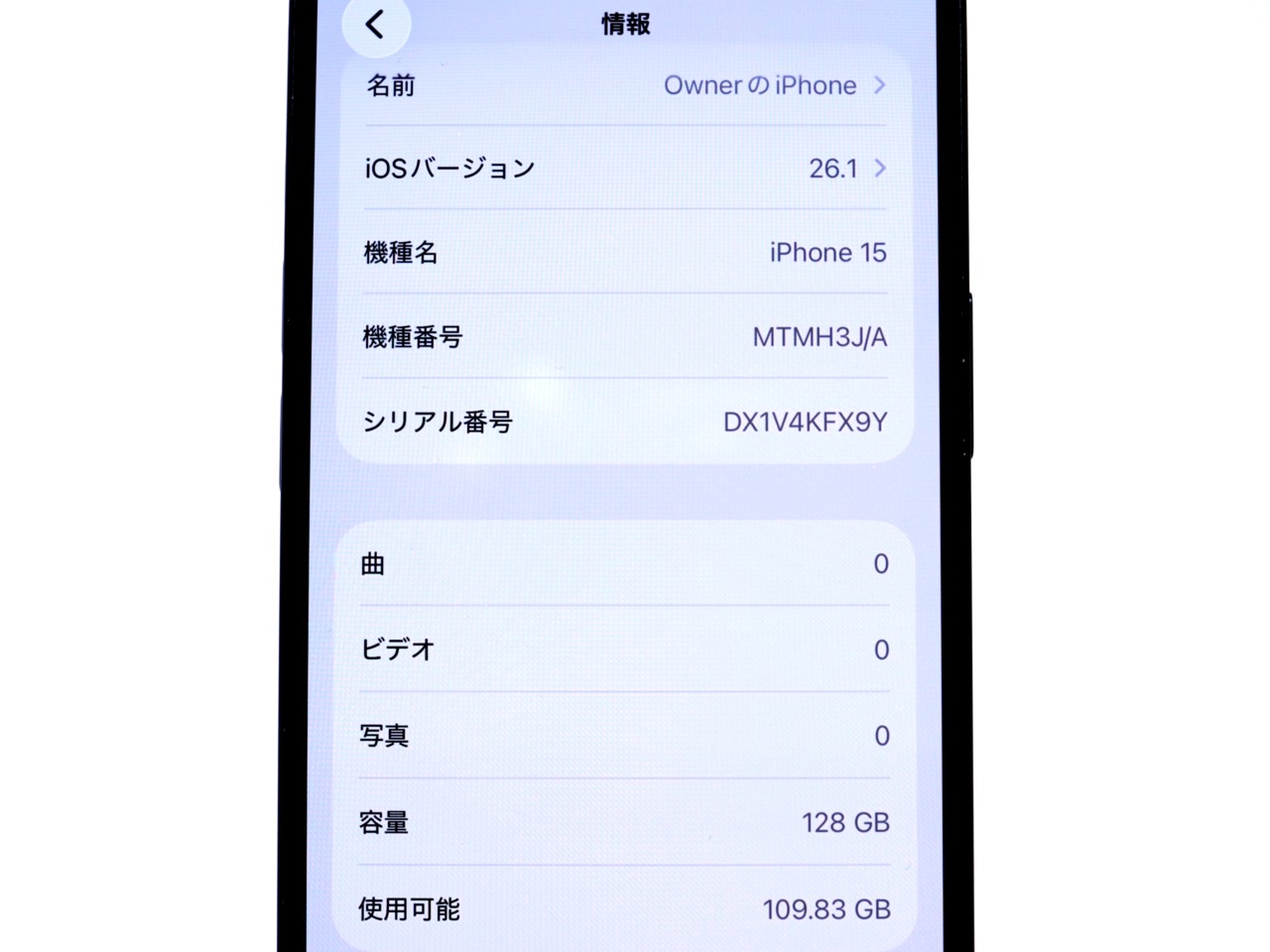 APPLE [USED]u059508 iPhone15 128GB SIMフリー [ブラック] の 商品仕様:
