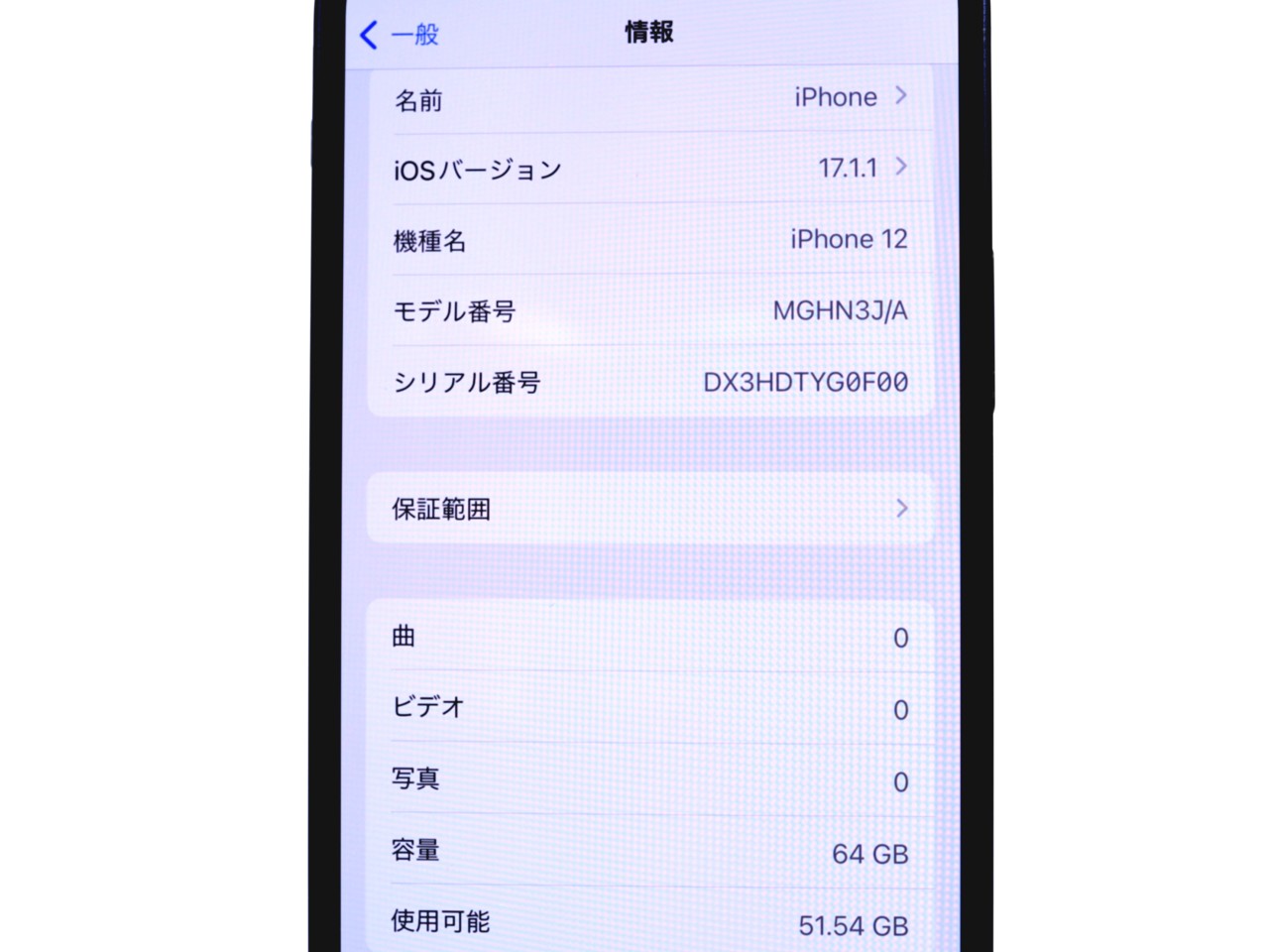 APPLE [USED]u059521 iPhone12 64GB SIMフリー [ブラック] の 商品仕様: