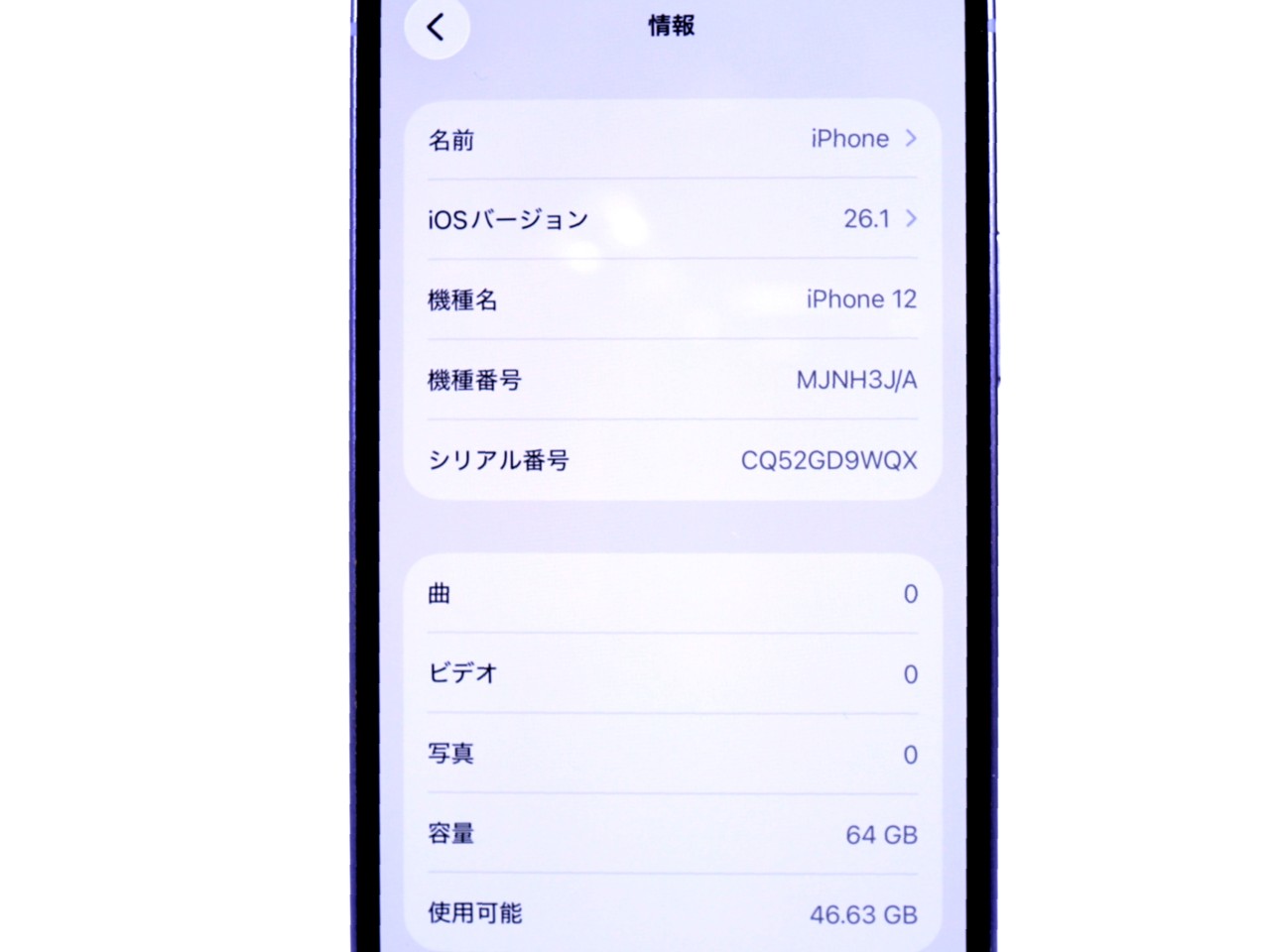 APPLE [USED]u059523 iPhone12 64GB SIMフリー [パープル] の 商品仕様: